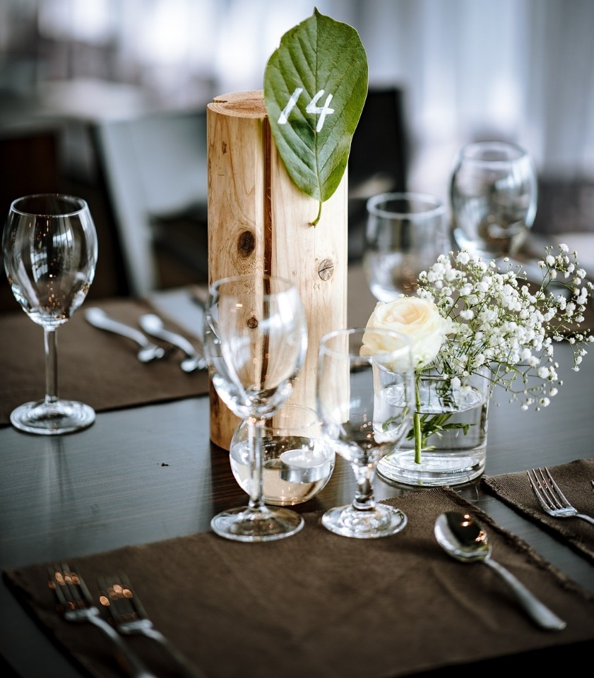 테이블 넘버는 나뭇잎으로 해드렸어요