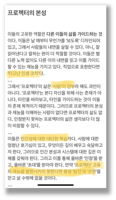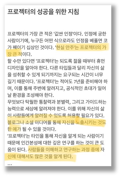 길고 재미난 내용이라 퇴근 후에야 차근차근 읽어보면서 밑줄을 그어 보았습니다.