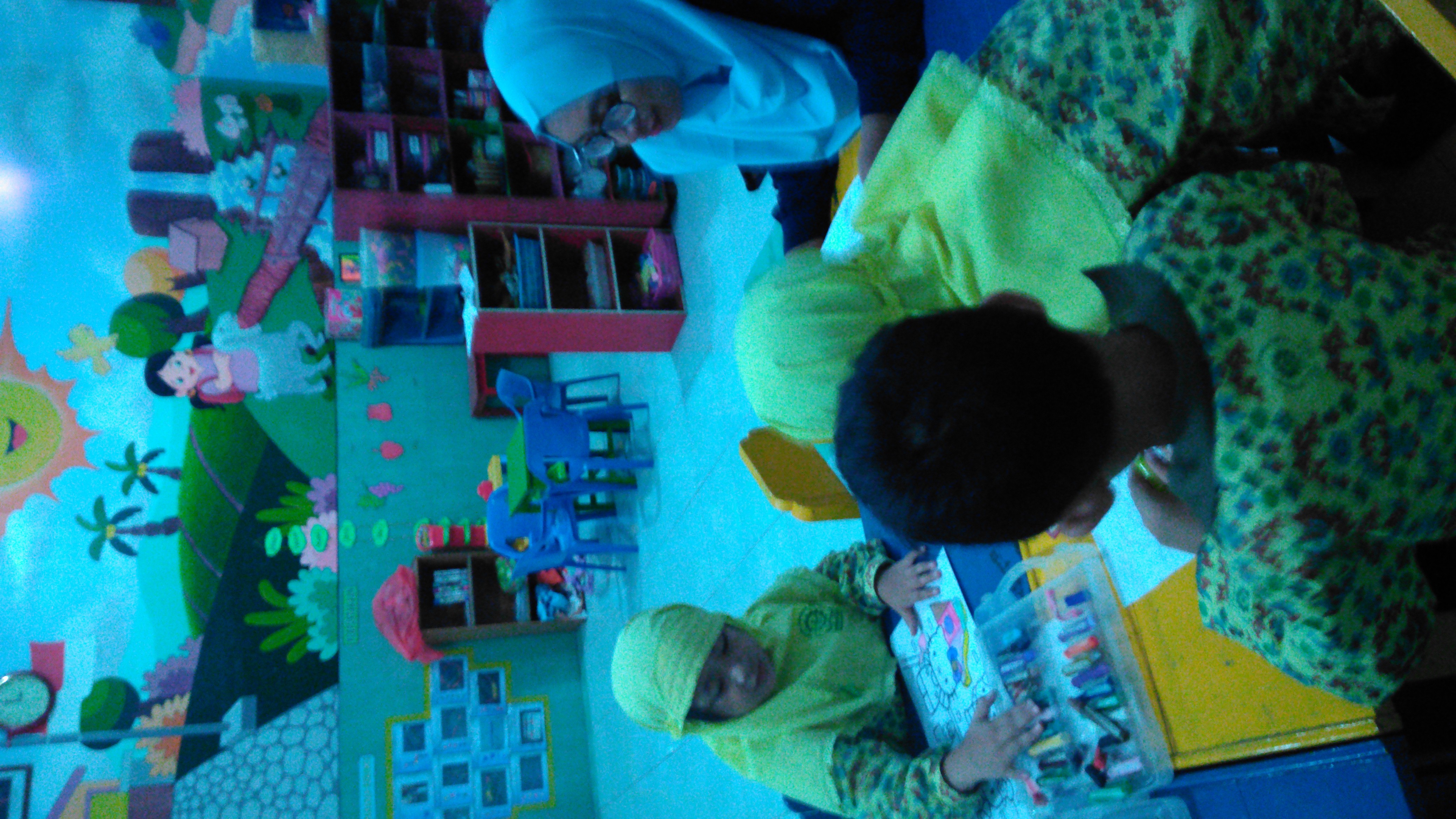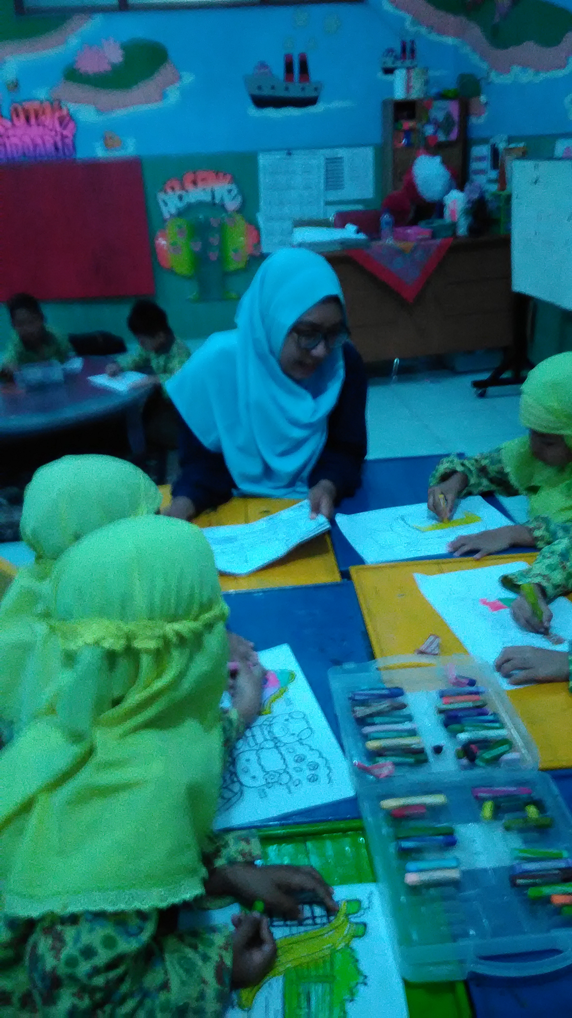 Di akhir materi, saya meminta anak-anak mewarnai gambar yang saya gunakan bercerita tadi. Mereka sangat senang. Maklum aktivitas mewarnai jadi aktivitas favorit mereka di sekolah.