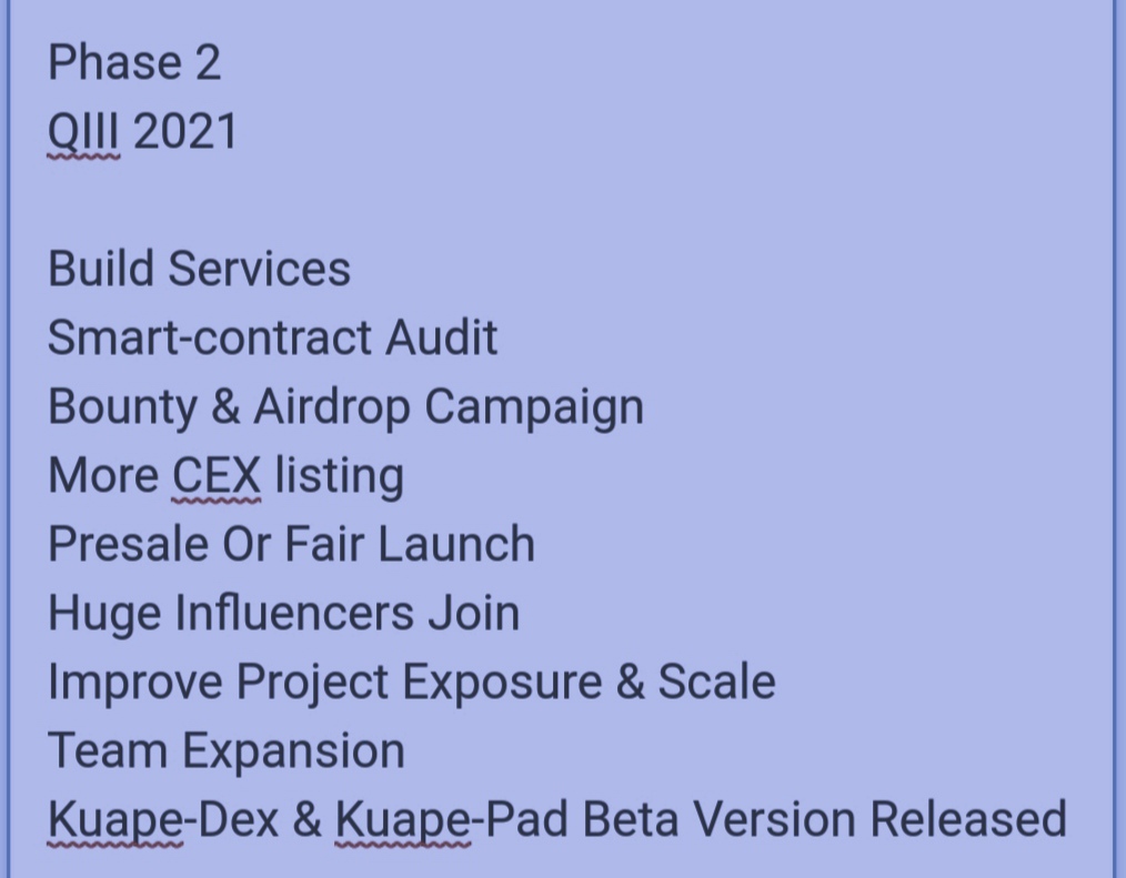 Kuape Finance team is a group of experienced blockchain and promoting experts in the field, this helps with completing this tremendous decentralized project which has the hope to help the Kucoin community by fostering its own DEX and LAUNCHPAD for Kucoin Community.