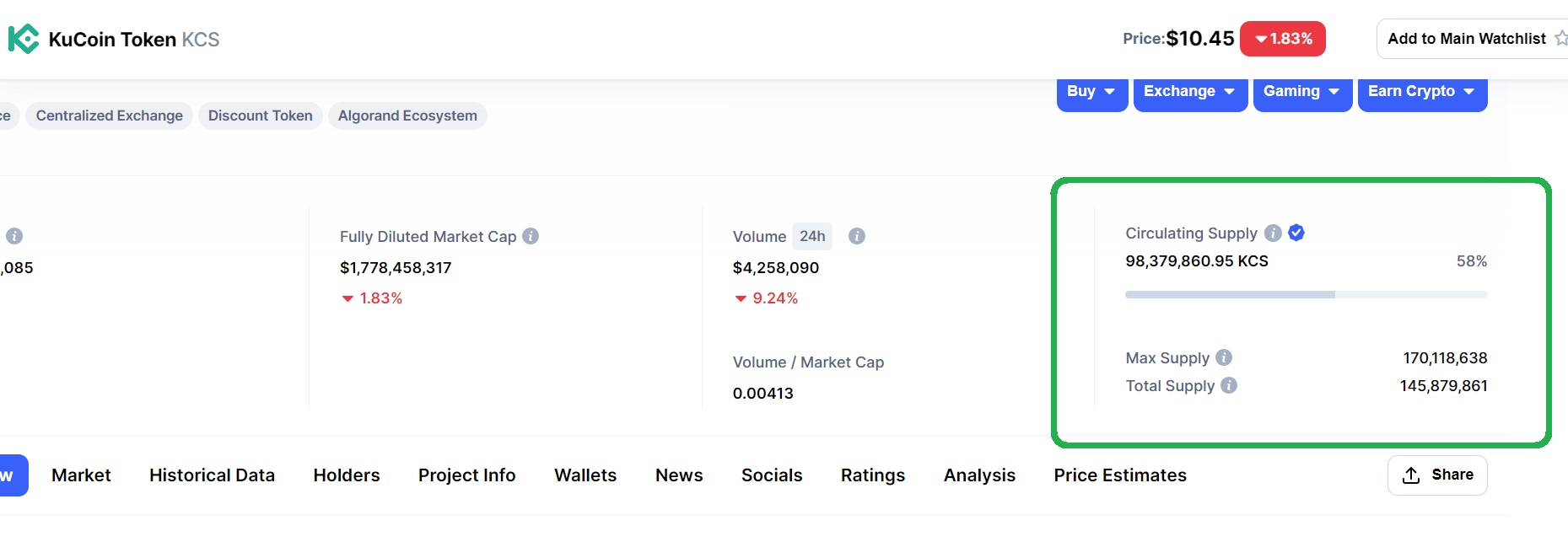 Having a look at the above image, you'd realize that the maximum supply of KCS is 170,118,638, and this is the amount that will ever exist till the end of time. Its total supply is now 145,879,861.