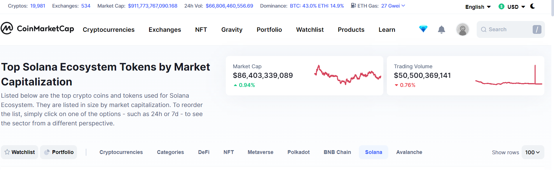 How big an ecosystem is will have a significant price impact on the native coin/token. A look at the Solana ecosystem shows that the entire blockchain enjoys a huge market cap and volume in a bearish market. Despite the network issues on the Solana blockchain, the growing ecosystem has been helping investors to reduce the impact of the market downtrend and clogged network on the price of SOL.