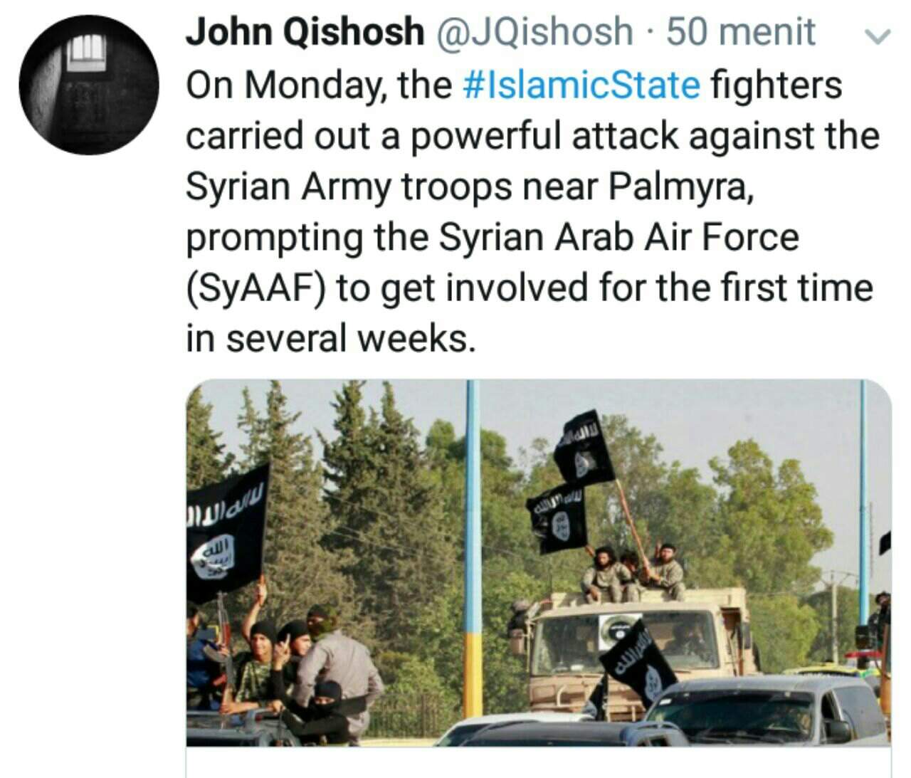 Angkatan Darat Suriah di dekat Palmyra, sehingga mendorong Angkatan Udara Arab Suriah (SyAAF) terlibat pertempuran untuk pertama kalinya dalam beberapa minggu.