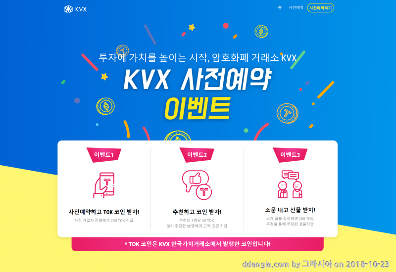 kvx 거래소 가입이벤트, 사전예약시 tok토큰200개 그밖의 추가 이벤트ket3122 (25)in #kvx • 8 years ago https://www.kvx.co.kr/ 서울대 & KAIST 출신으로 팀원 구성 사전가입시 거래소 토큰인 TOK 200개 지급 (선착순 5만명) 추천받으면 40개 지급 커뮤니티에 홍보하면 200개 지급 수익의 75%를 거래소 수익 기여도에 따라 기여자에게 BTC, ETH로 에어드랍 추천인 코드 : ket4122@gmail.com #tok #airdrop