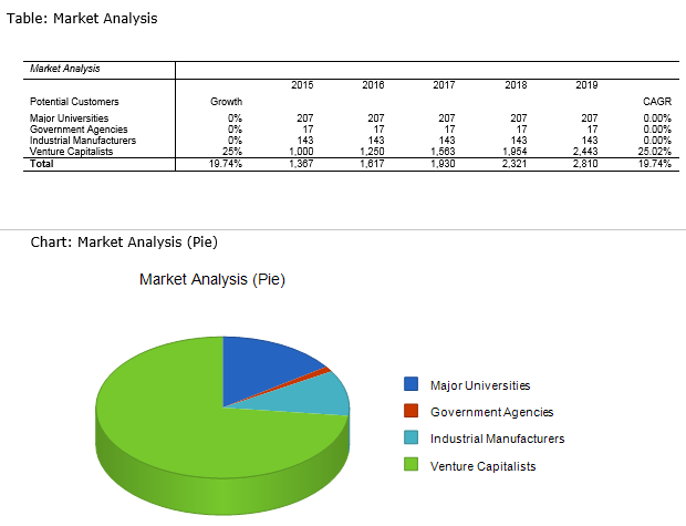 We have broken up our markets into four divisions to analyze the percentages of types of people who will utilize the information produced by the Kinetic Labs.