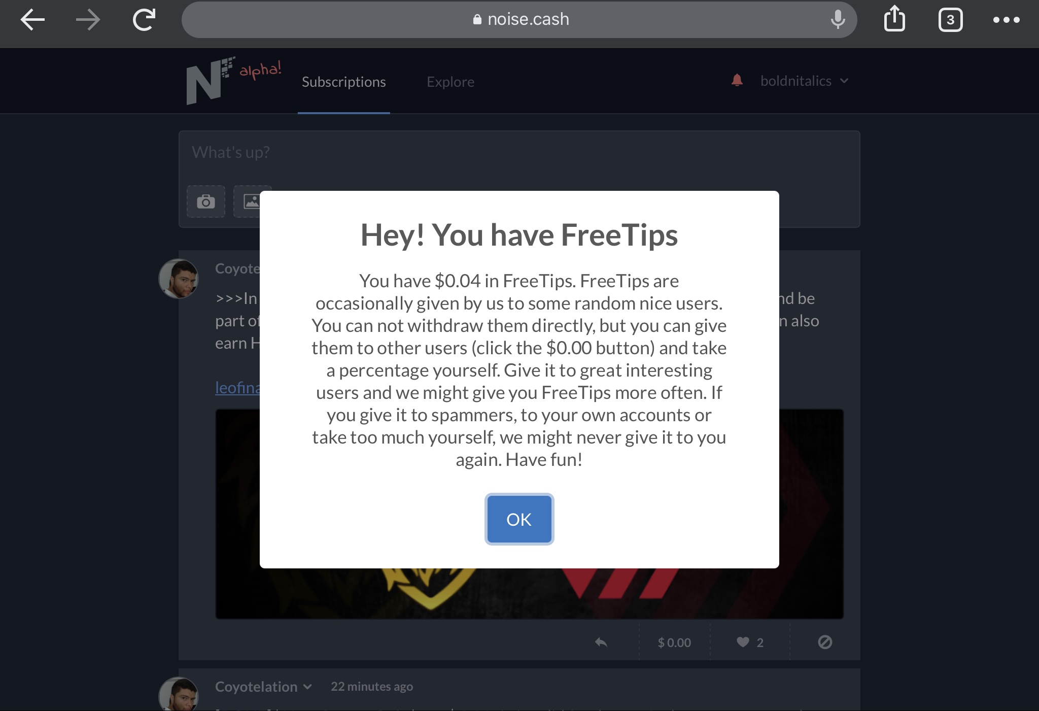 Noise.cash is currently in its alpha stage so they have put up an alpha warning.