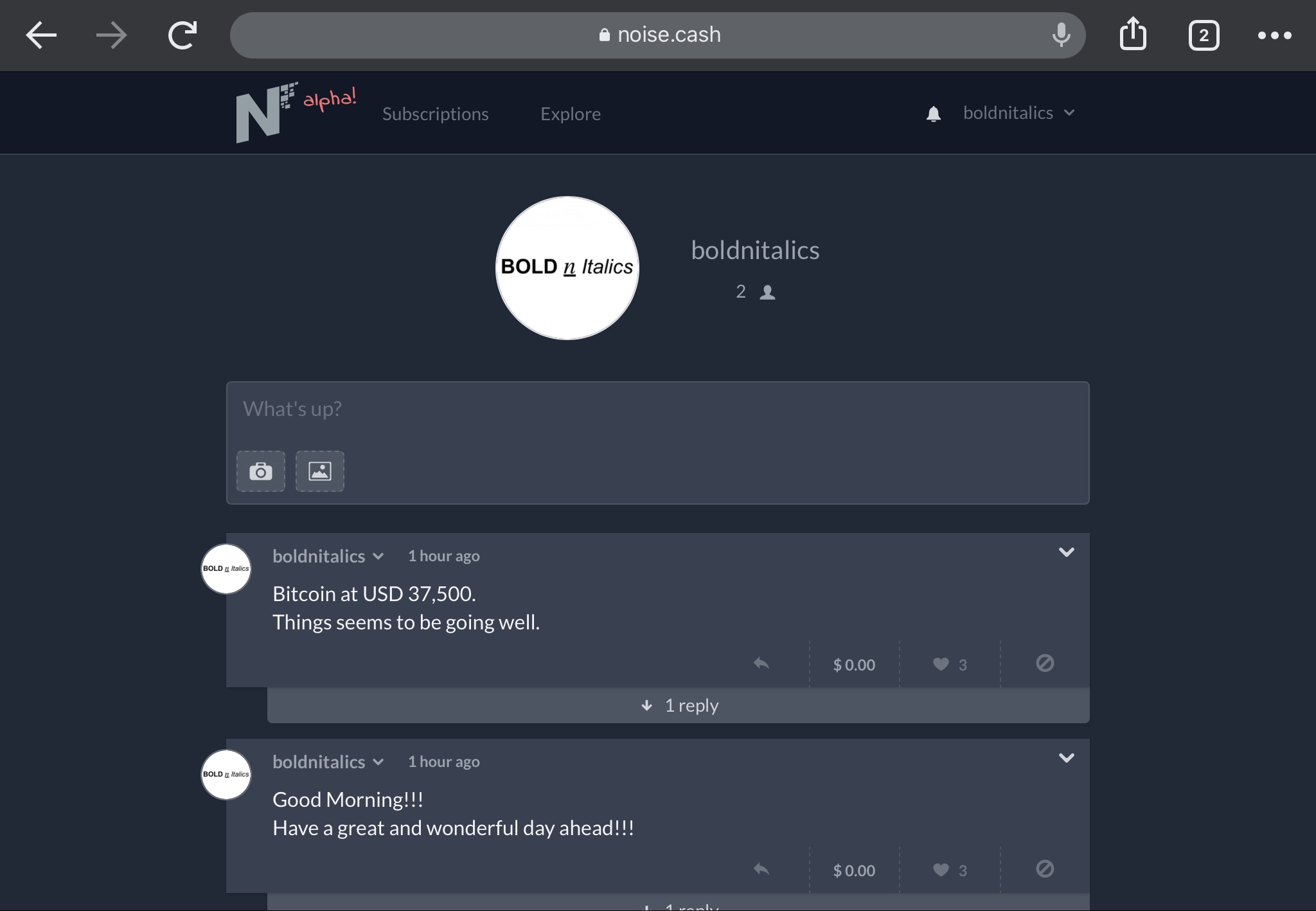 Noise.cash is the micro blogging platform that rewards the users in $BCH. The user signing up is required to enter their wallet address.