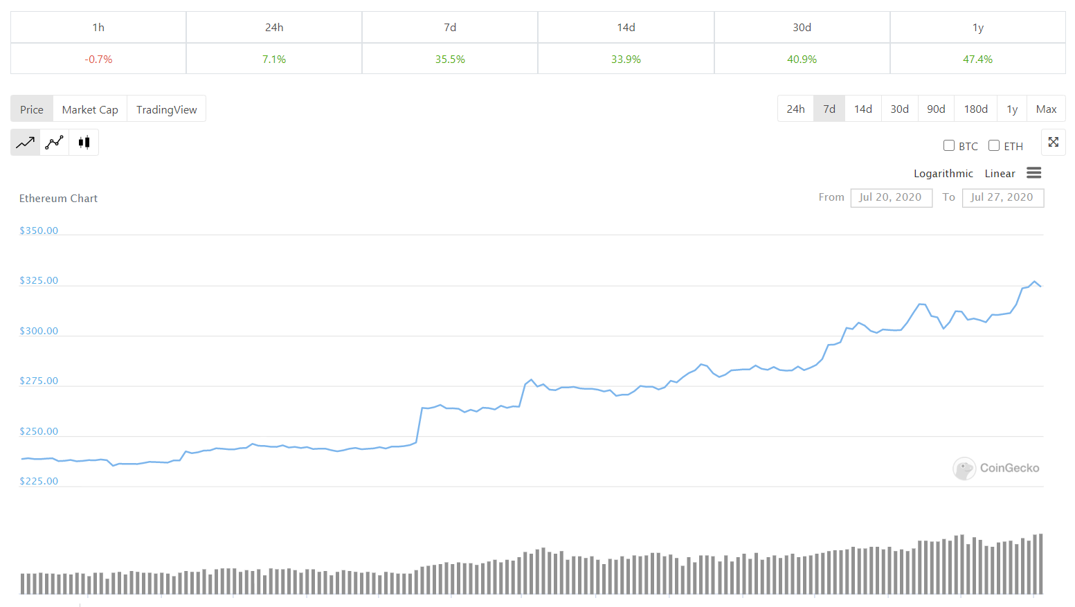 Here's a 7-day chart from Coingecko.