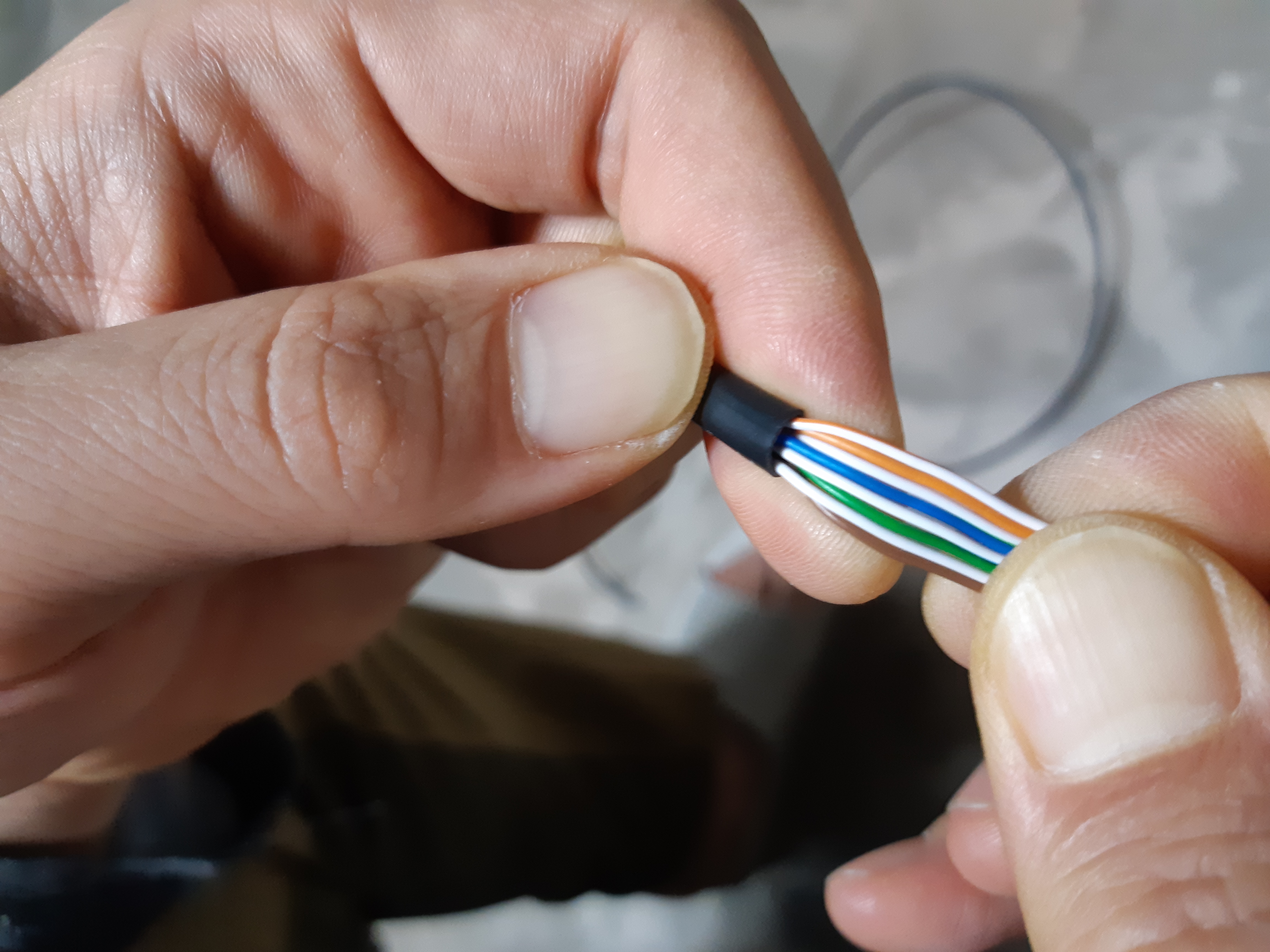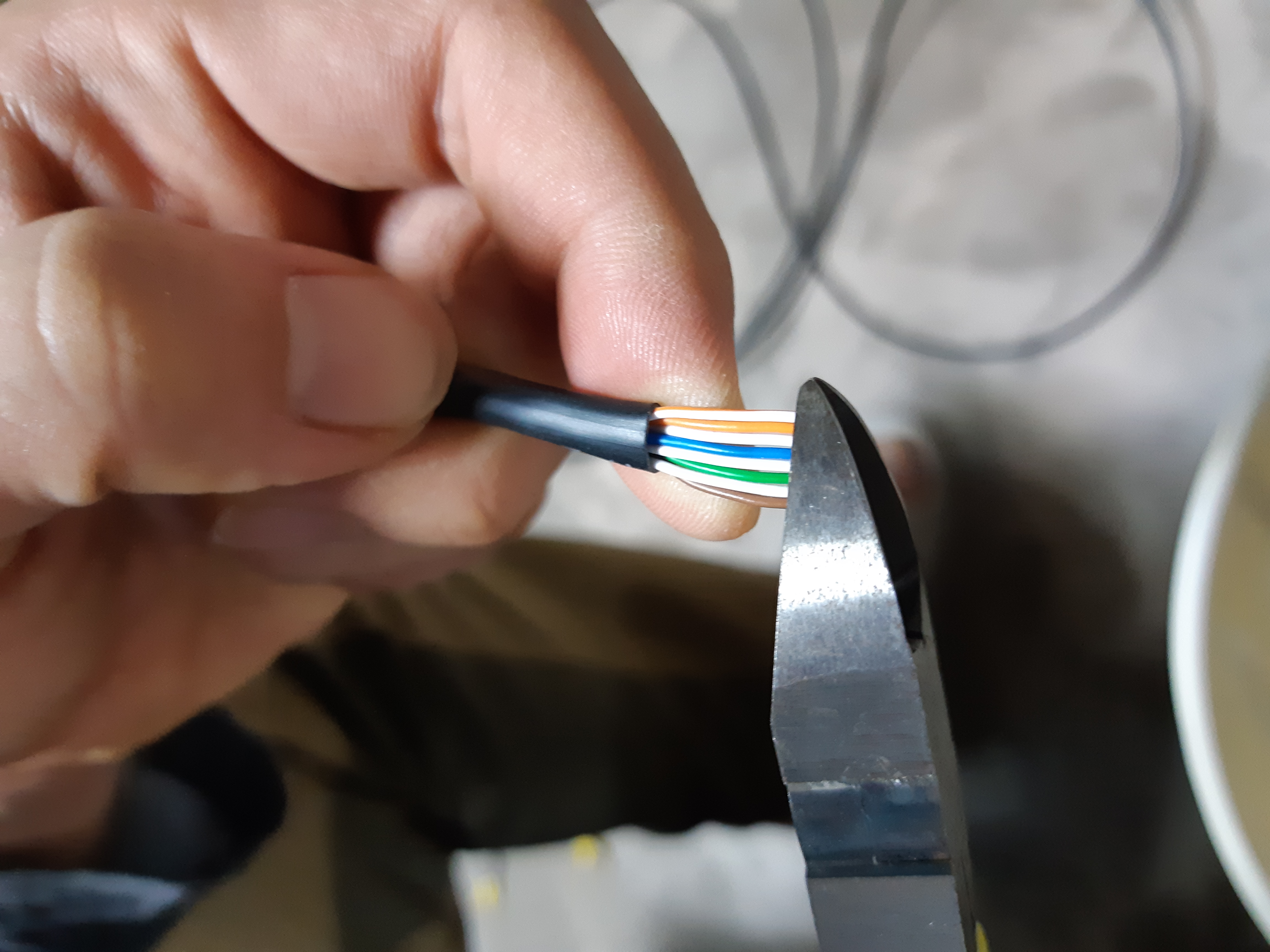 선들을 반듯하게 정리한 후 RJ45 커넥터 길이에 맞춰 직선으로 반듯하게 잘라줍니다. 니퍼를 이용하세요