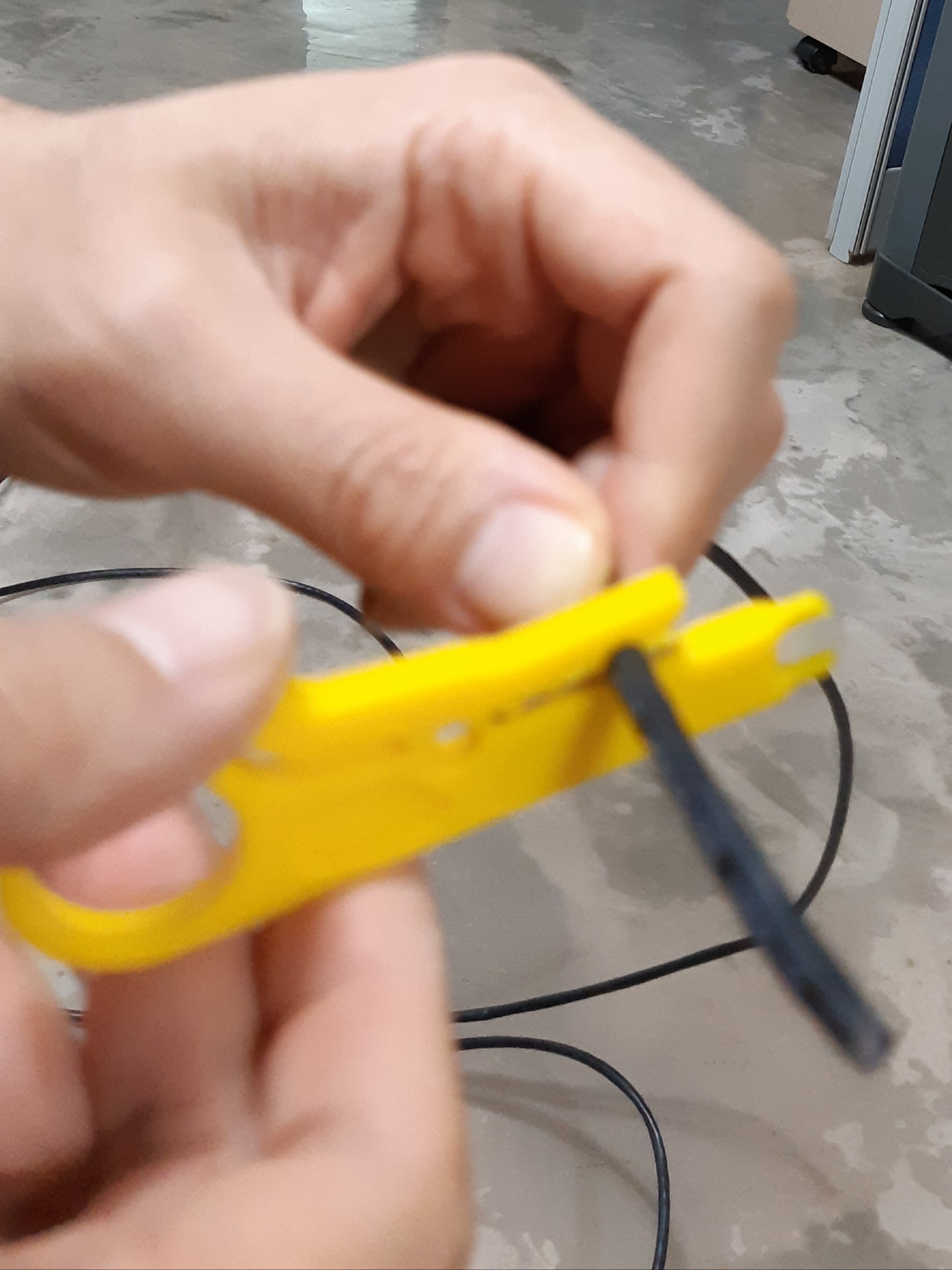 아래와 같이 랜선피복기의 첫번째 구멍에 랜선을 넣고 살살 돌리며 벗겨내야합니다. 잘못하면 선이 잘릴 수 있으니 조심하십시오