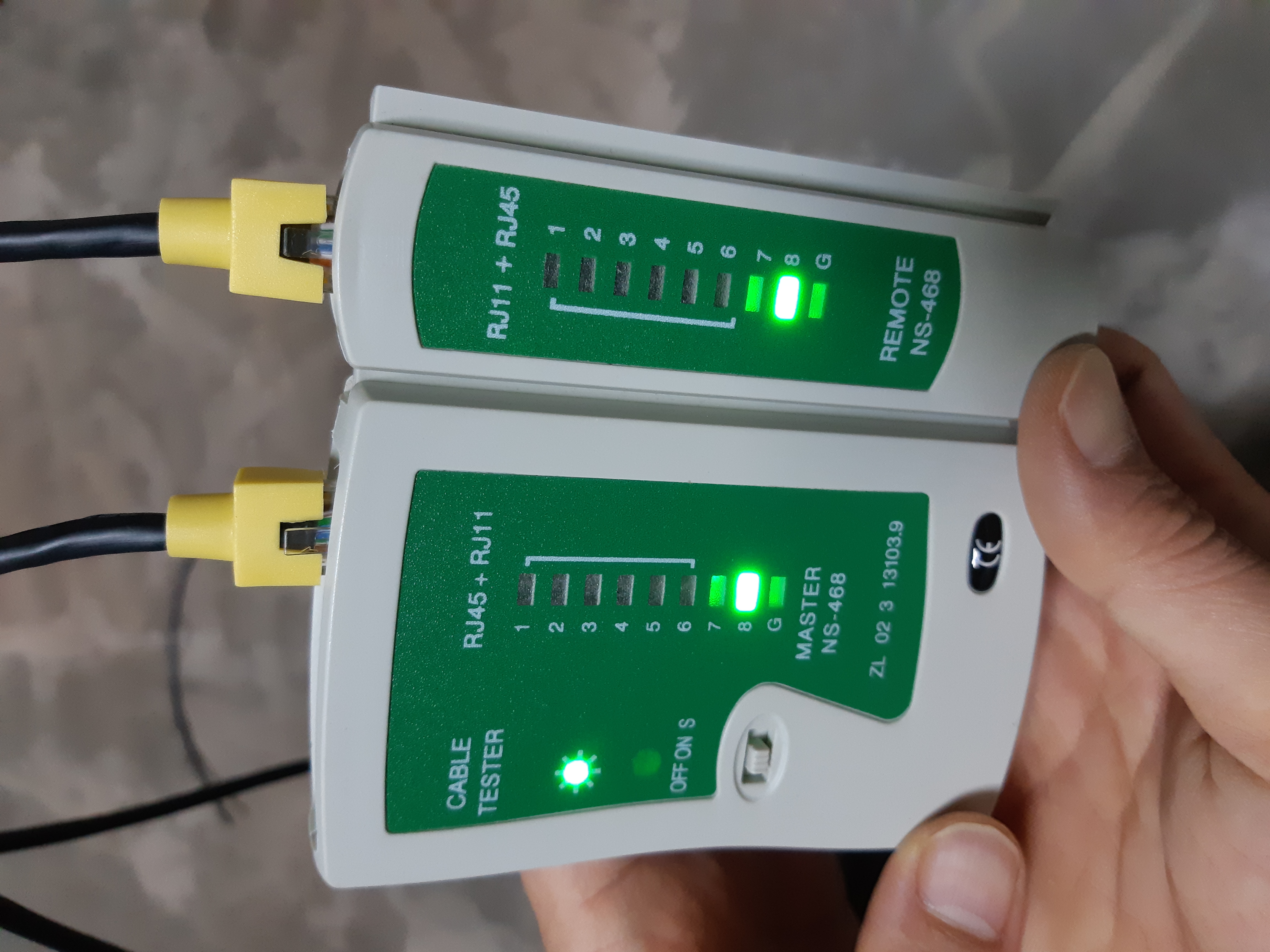 Connect both sides of the cable to each cable tester. If the lights from 1 to 8 light up well, it will be successful.