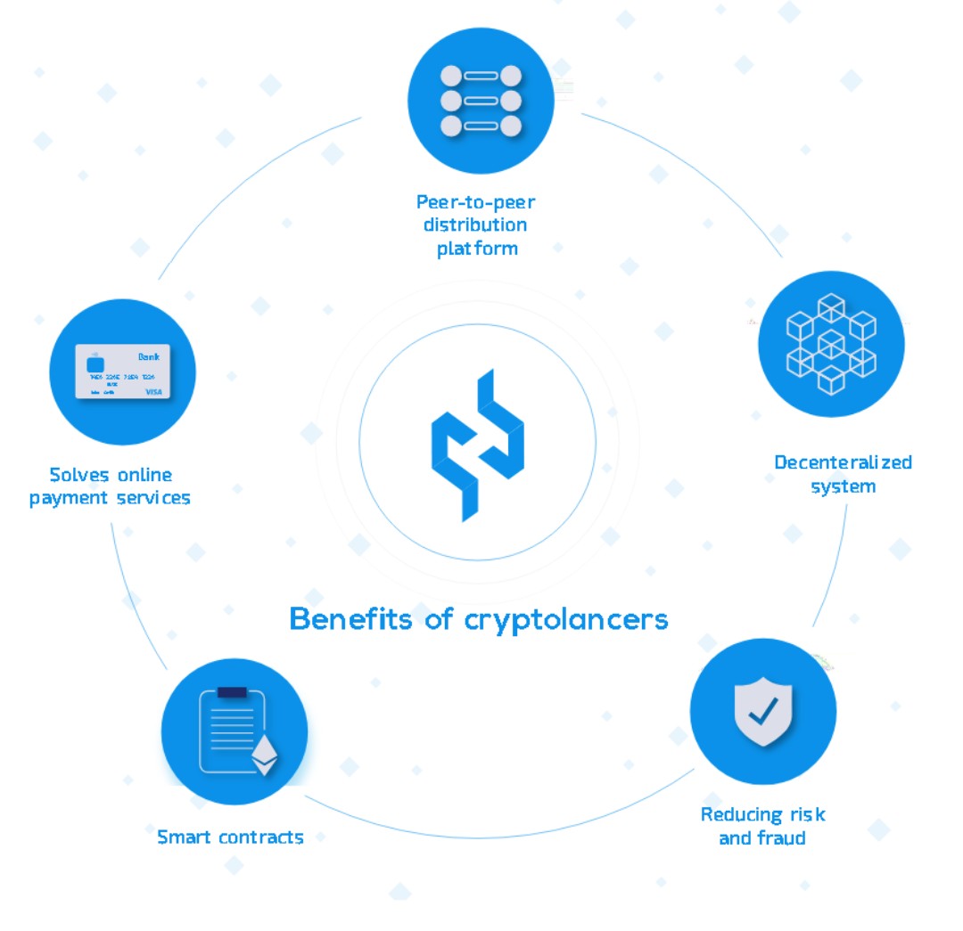 The CryptoLancers ecosystem uses distributed computing to solve transactions problems of online payment services, inherent in existing systems, in a single distributed peer-to-peer platform. Decentralized blockchain technology and smart contracts facilitate customers’ payment of project on a trust-agnostic platform, offering a greatly reduced risk of fraud and no counterparty risk.