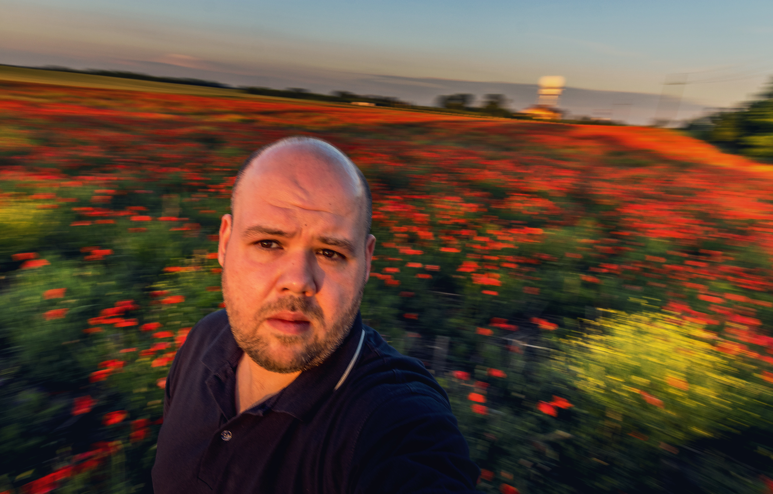 I very much like the second shot, it looks very surreal, the poppies with that tower in the background. Sometimes it's cool with flower fields to go reeeeeally low and make the flowers 'tower' above you, if you can get a house or something else as a backdrop it will create dramatic perspective. Something cool to play with :D Love the selfie by the way :D