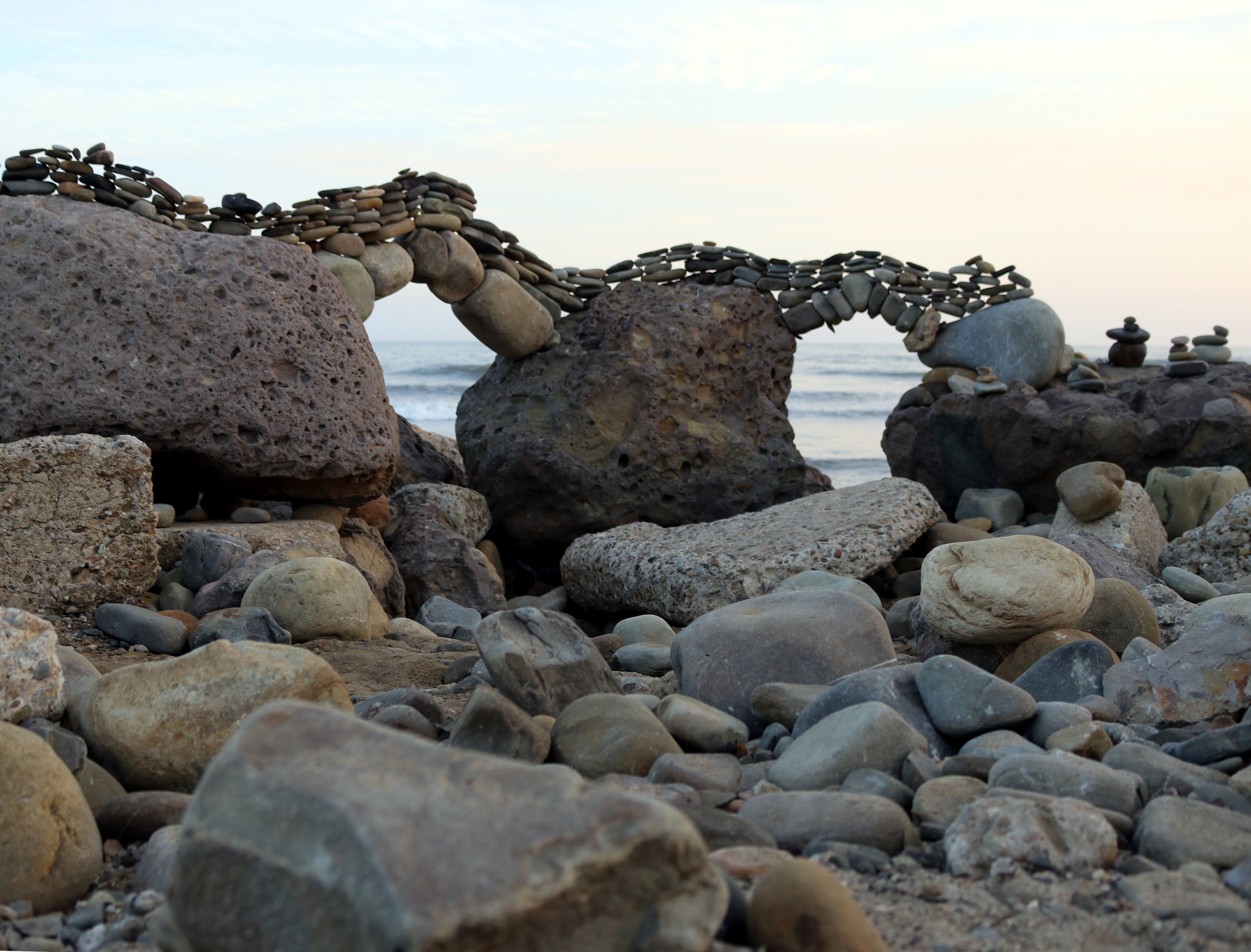 I took these picture on the beach at Ventura, California. I used to see rock balancing around the beach, where rocks were stacked in unbelievable ways that seemed to defy gravity. When I saw these cairns, I just assumed they were elementary rock stacking, but maybe there's more to it. Are any of you finding modern cairns where you live? Have you built one? Why did you build one, or what do you think they signify?