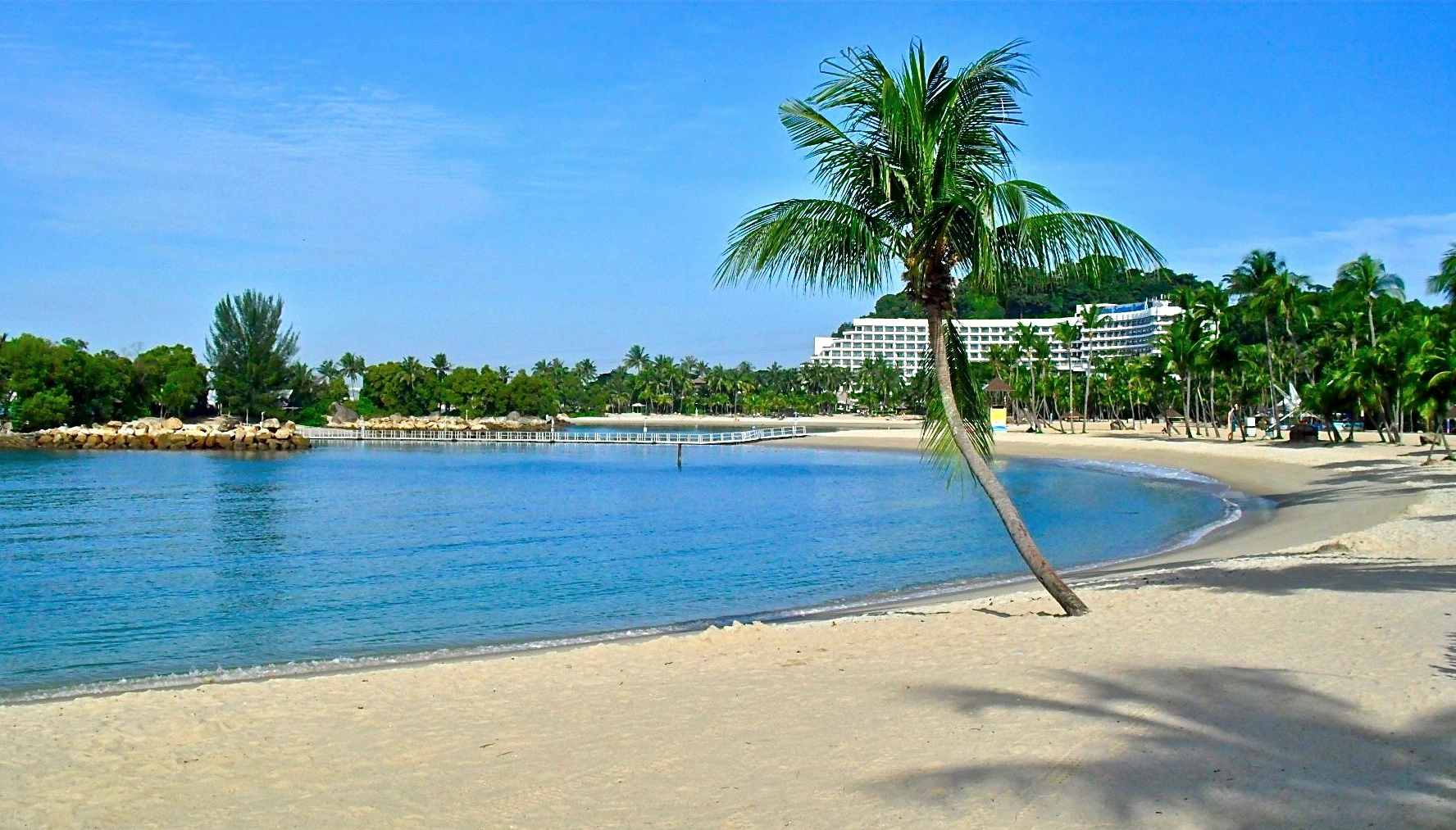 In the 1970s, Singapore started developing the island into an attractive resort area. Among other intiatives, it established 3 man-made beaches along the southern shore, by importing sand from neighbouring countries. At the same time, the government held a contest to rename the island, and ultimately chose the name “Sentosa.”