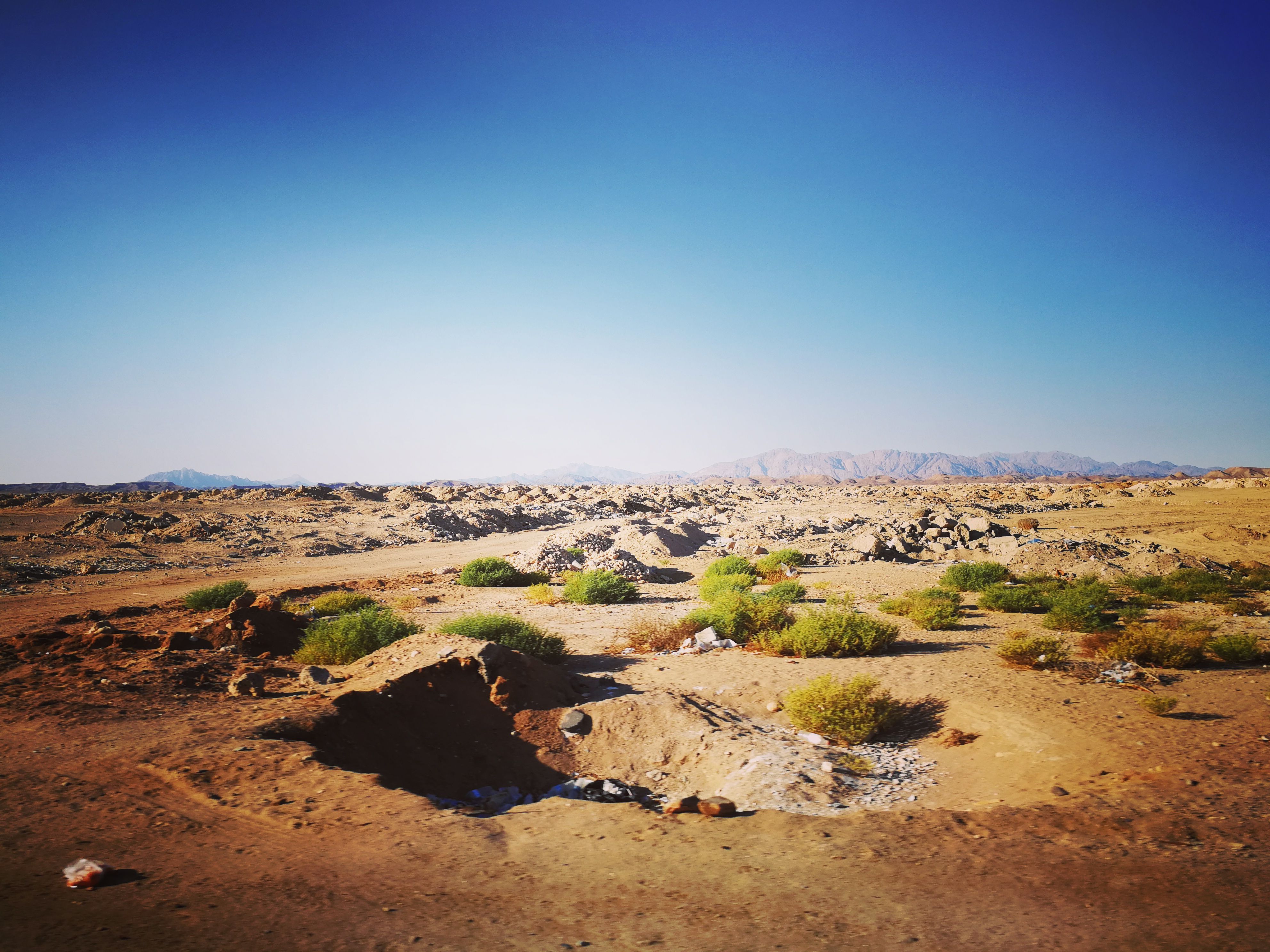 Mit dem shuttle (in dem laute ägyptisch/arabische Musik durchs Radio dudelte) ging es ca.45min durch eine Karge Landschaft zum Sentido Oriental Beach Resort.