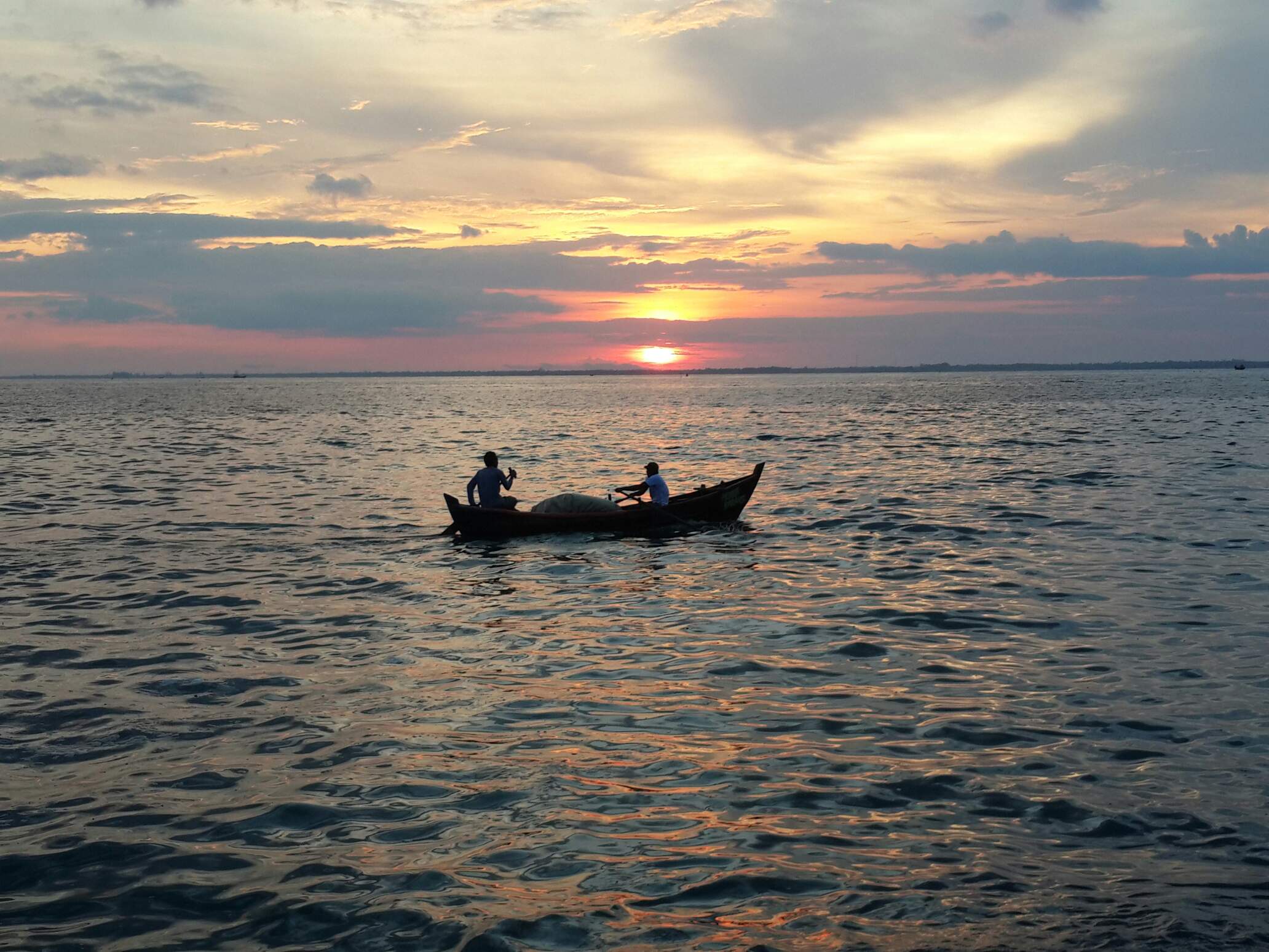 original photo shows two fishermen are anchored looking for fish catches in the middle of the sea of Aceh