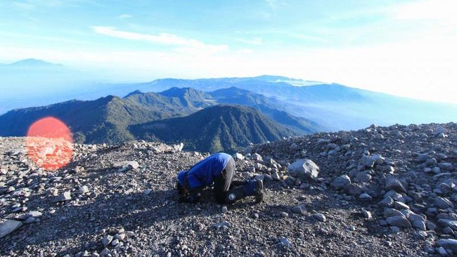 Lapisan salju dumadakan muncul ing puncak Mahameru utawa Gunung Semeru, Jawa Wetan. Salju unik ditemokake nalika musim transisi.