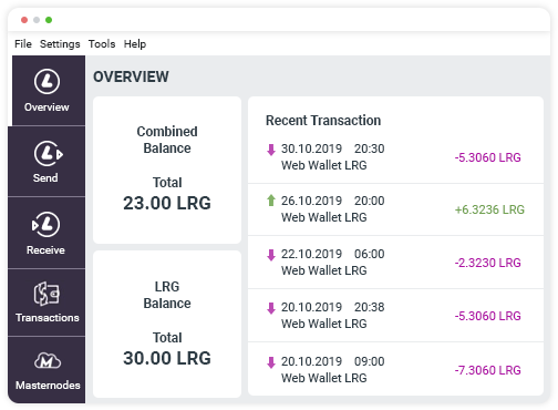 The Largo Coin (LRG) desktop wallet for PC is designed for all major operating systems to create convenience for any user to store, transfer or exchange Largo Coin (LRG). Largo Coin (LRG) wallets are highly protected and meet very strict security standards by occupying very little disk space.