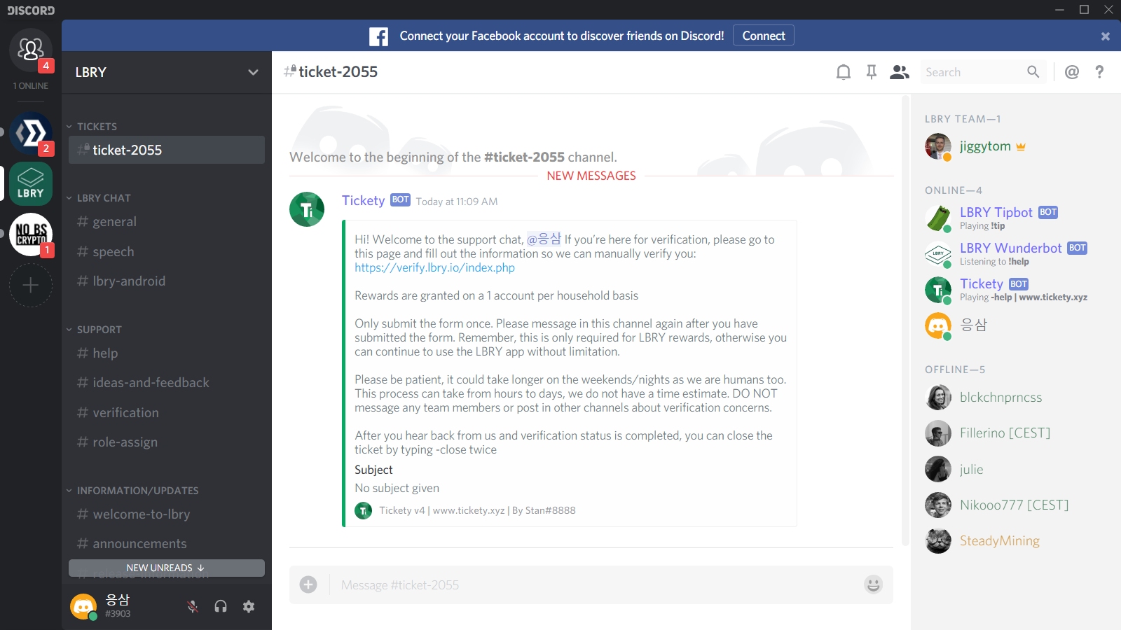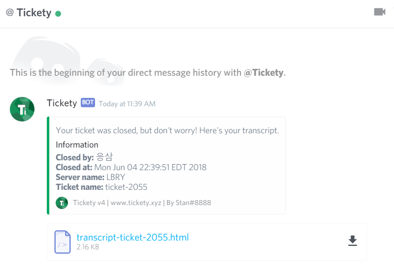 하지만 디스코드의 Tickety 안내문에 따르면