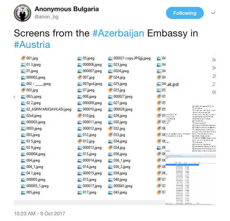 Now, Anon Bulgaria has returned with several tweets indicating that even more potentially damaging data has been hacked from the Azerbaijani embassy, this time in from Austria.