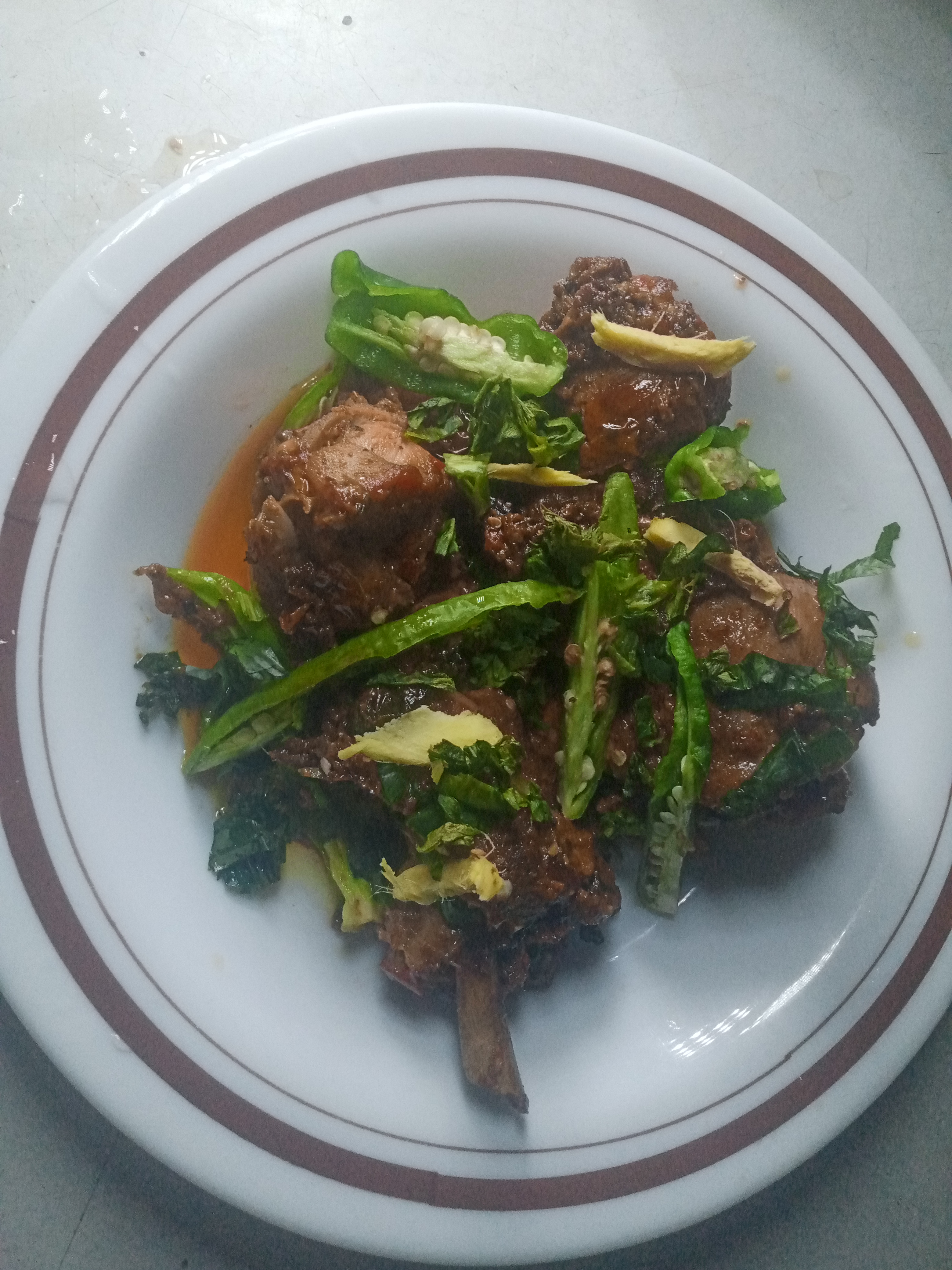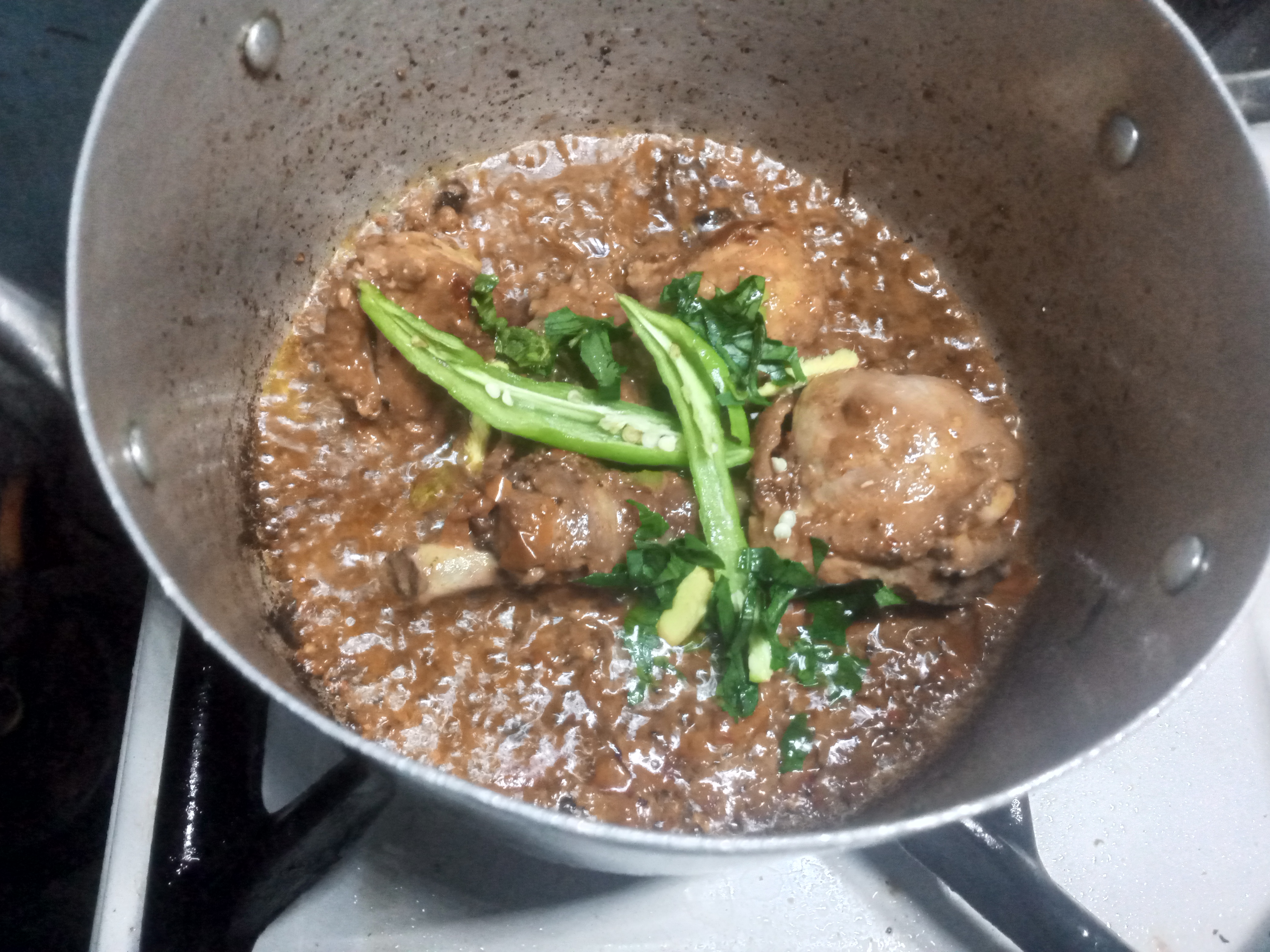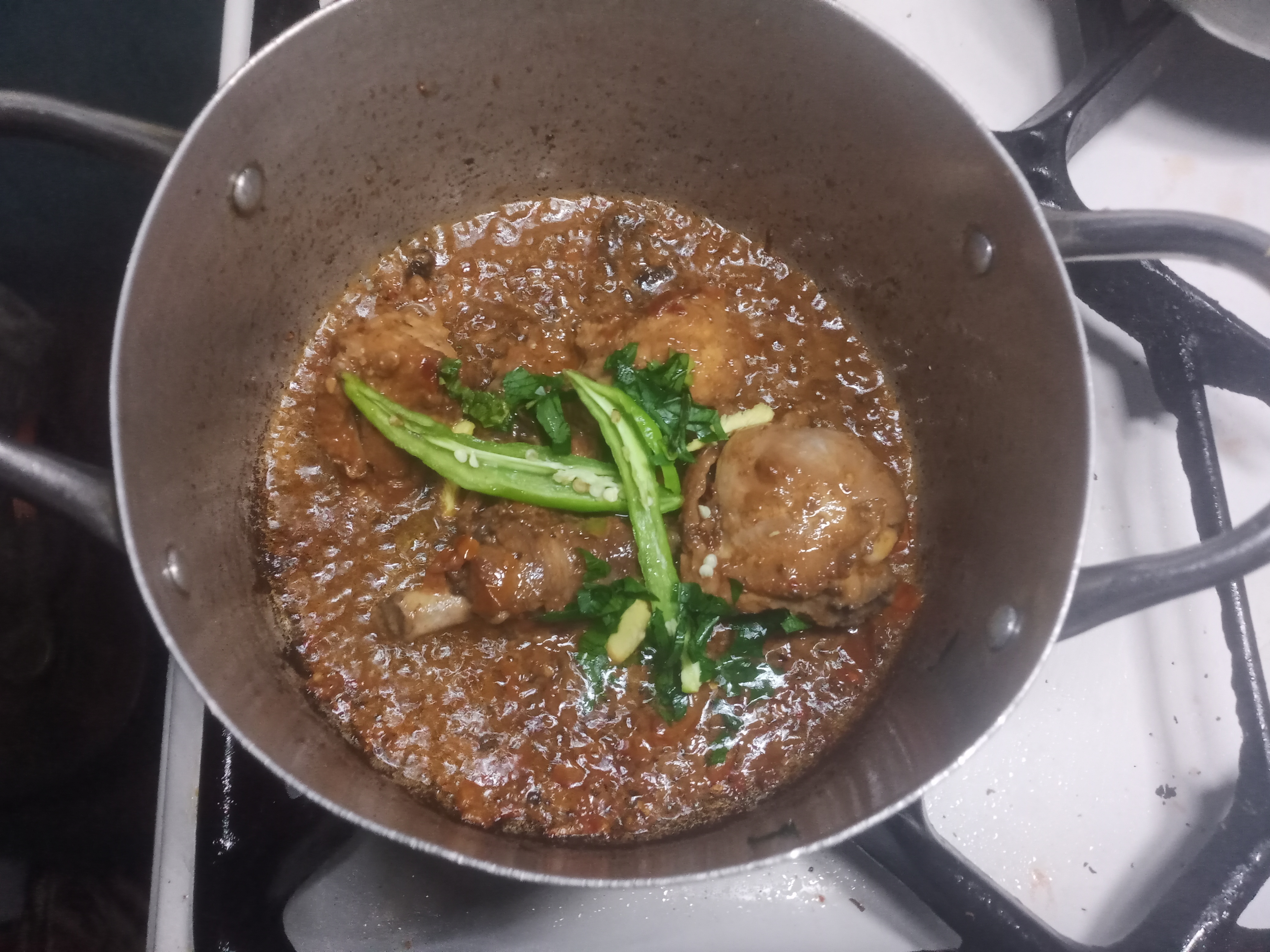I put the green chilli, ginger, and fresh Coriander, then fry for 1-2 minutes and when done, I turn off my cooking gas.