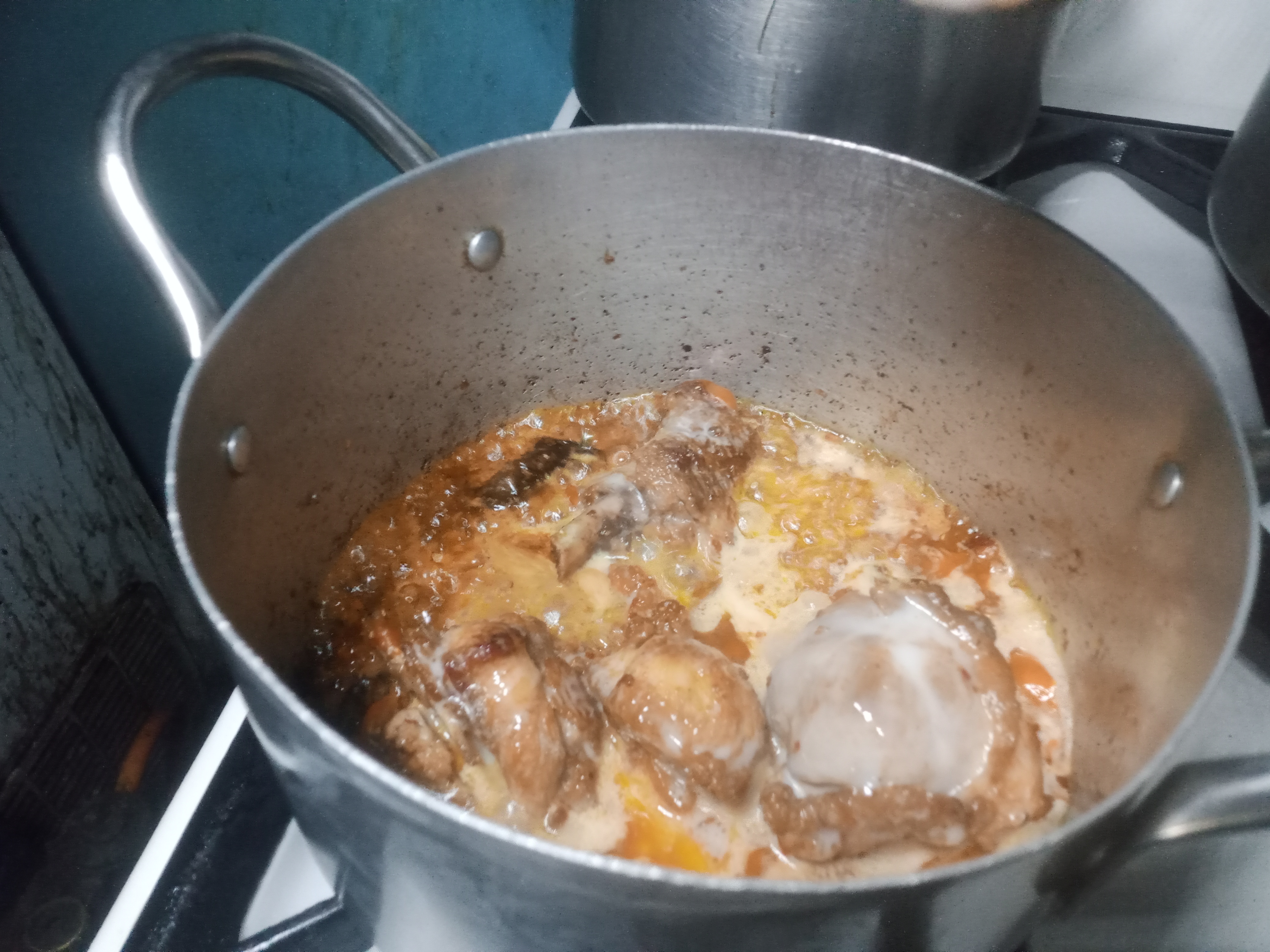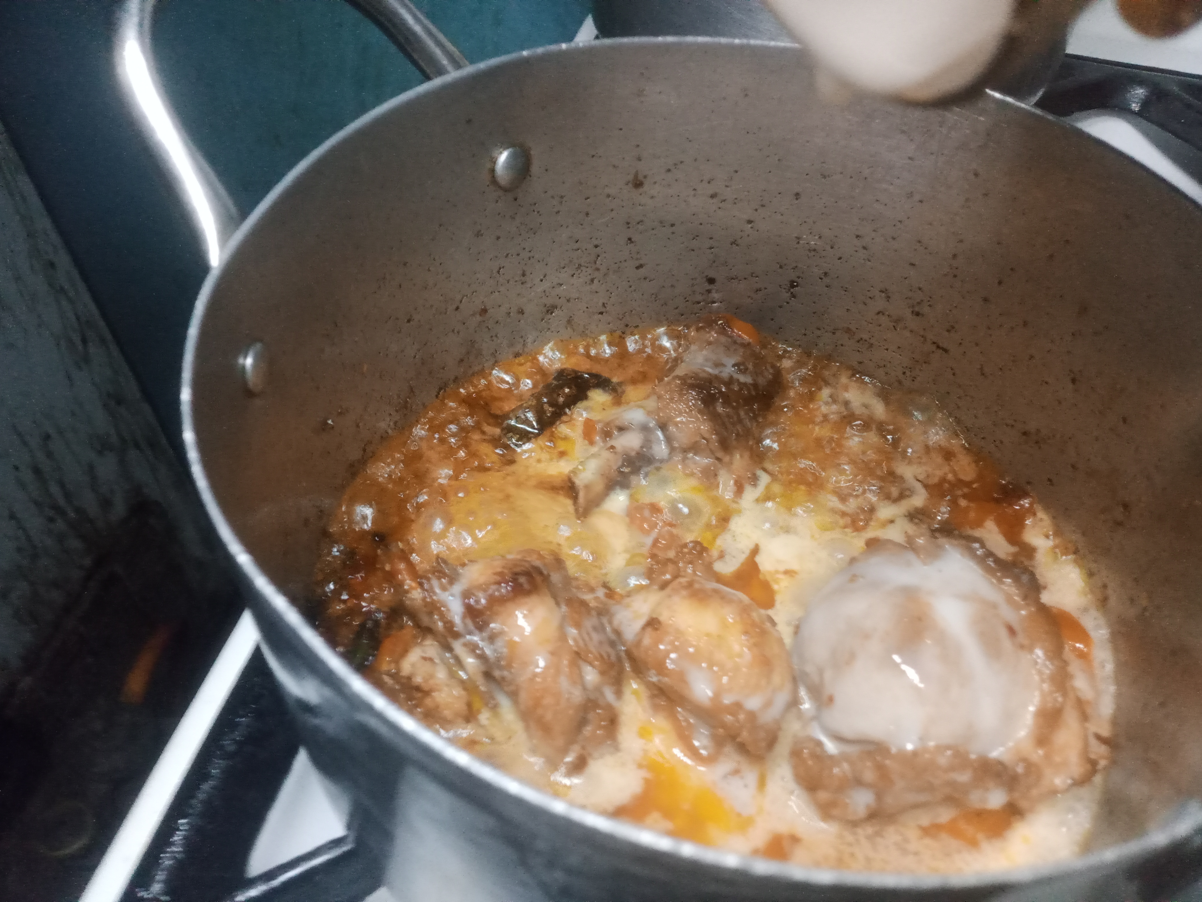 At this stage, I poured the yoghurt whistle and fry till the oil separated.