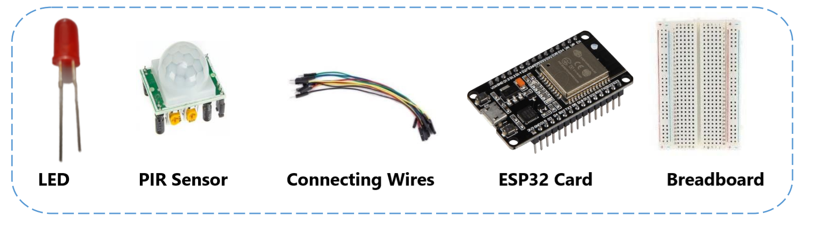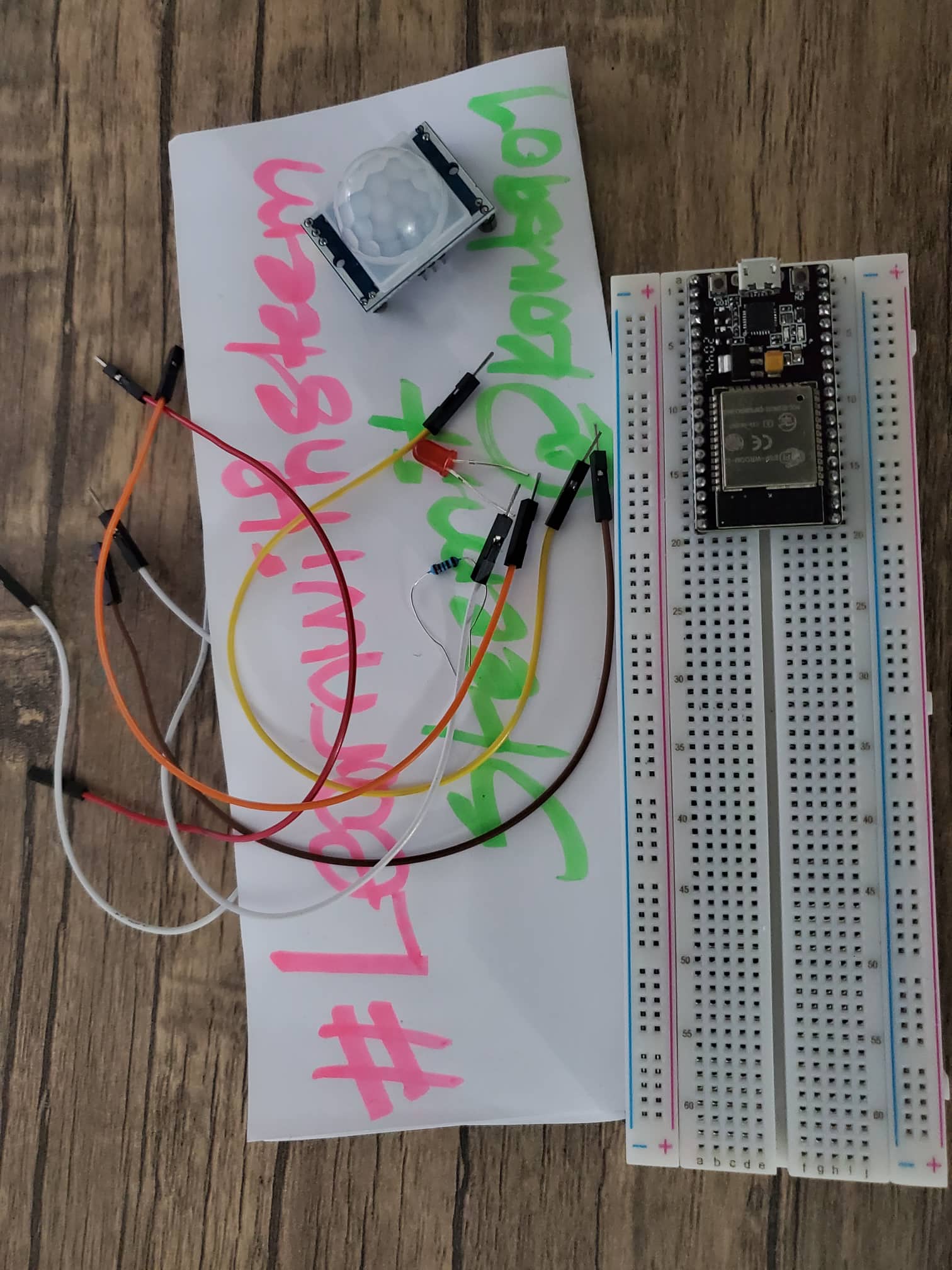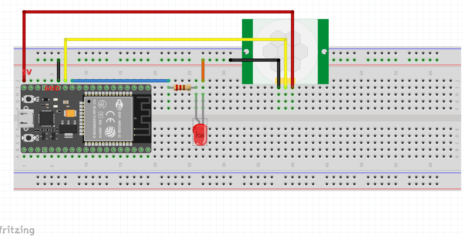 - Start by connecting the HC-SR501 sensor , led and resistor to the breadboard and then use the wires to link its pins with the pins of ESP32.