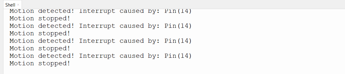 - The LED should light up for 10 seconds when motion is detected, and a message should be printed in the Shell.