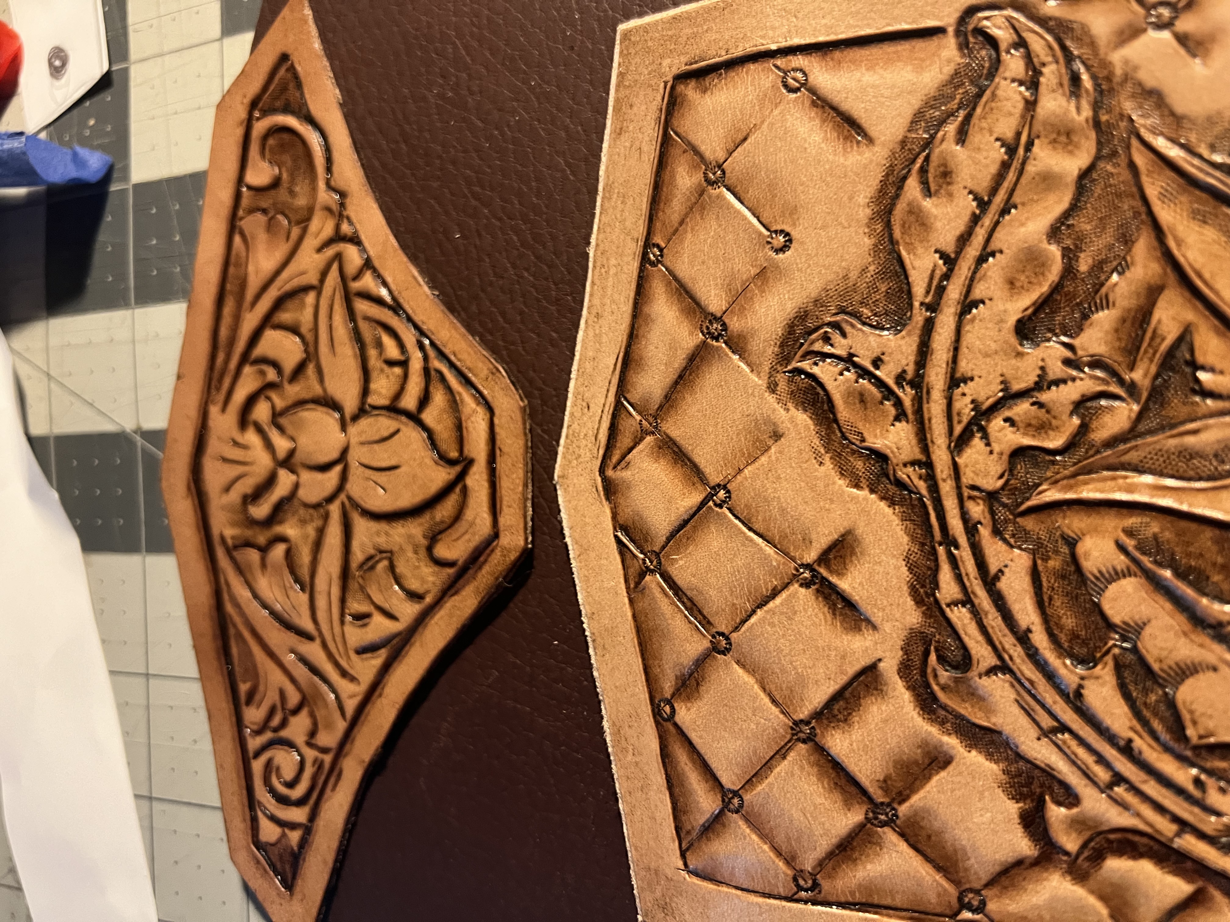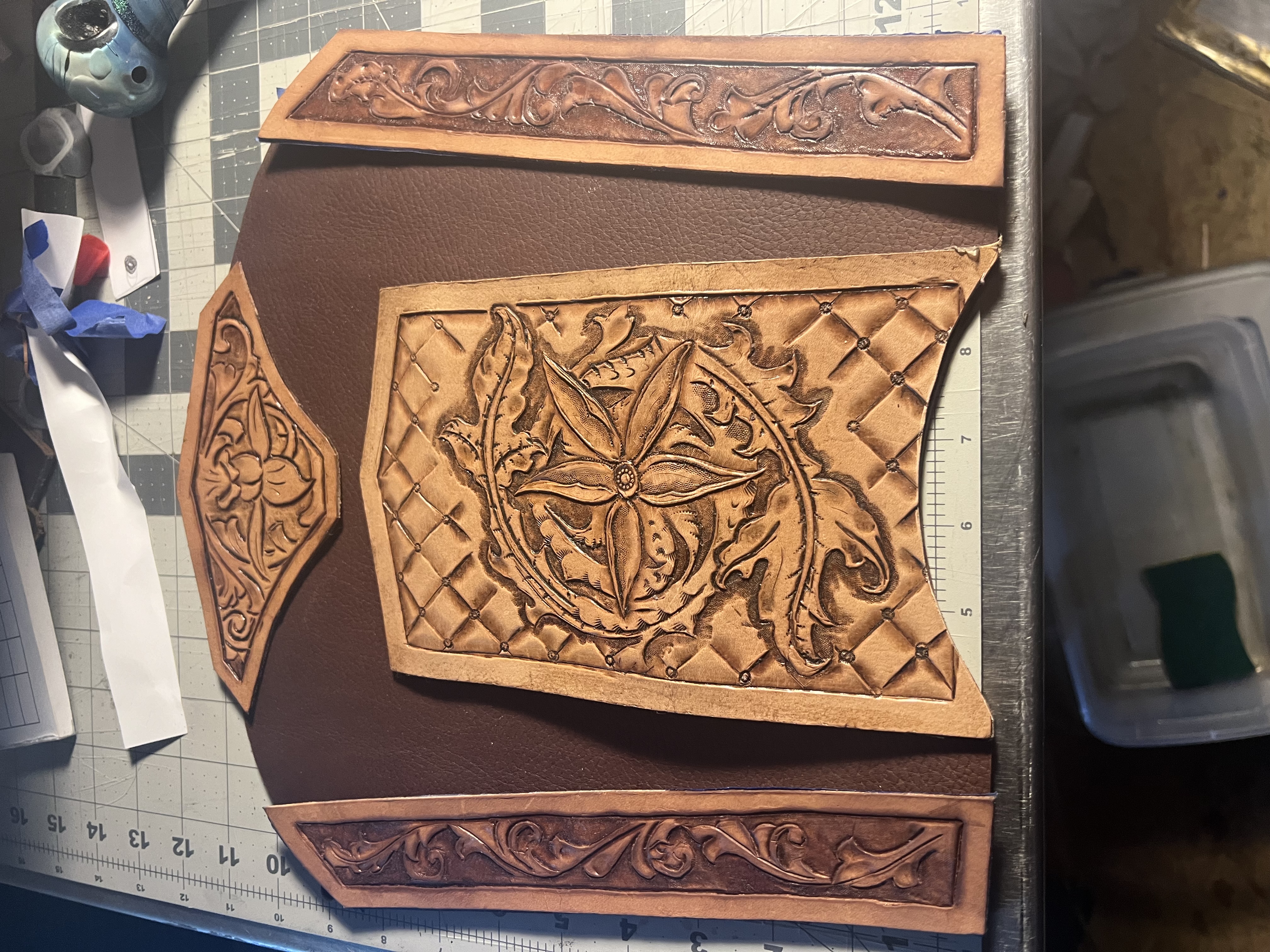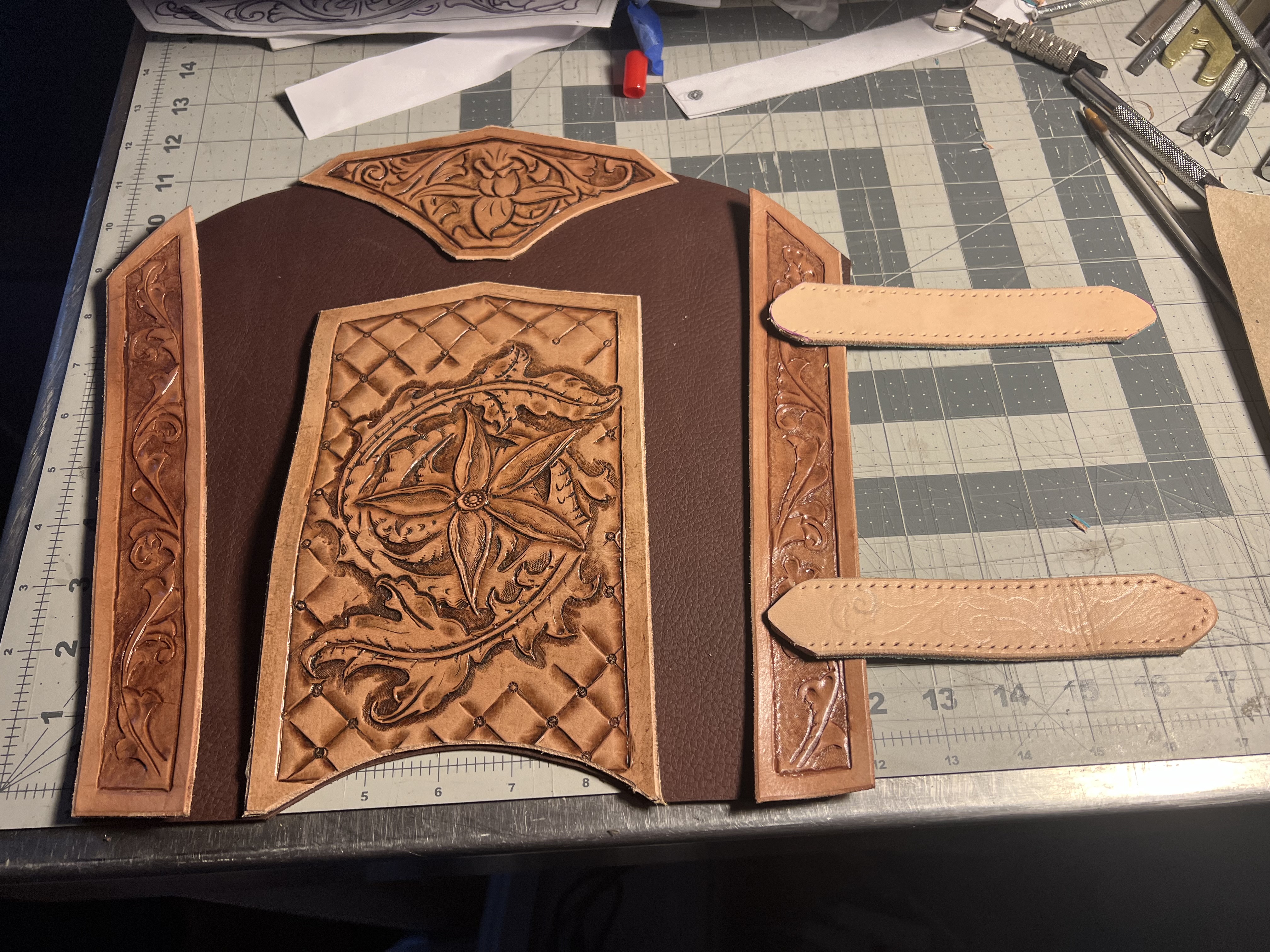Here, I’m building an arm bracer for my brother to wear to Renn Faire. I have a lot of work yet. Tell me what you think, please. Thank you for your time.