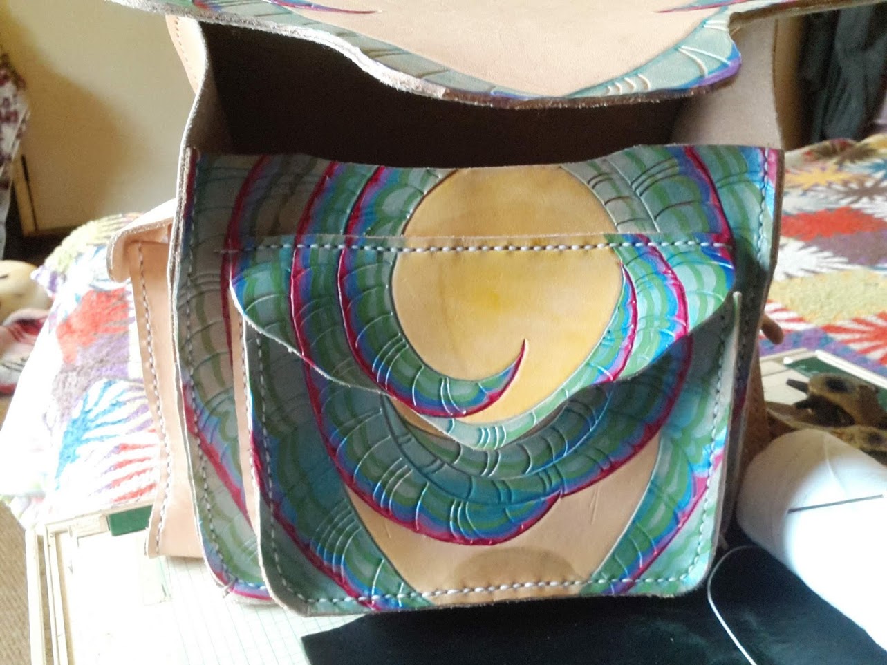 Almost done but for the trims. We went from sunset colours to almost psychedelic. Into season 7 of Mad Men, what an awesome show, specially for one with my background in advertising and layout. It is almost my birthday so it is that I am a Gemini, multi-tasking is so easy for me, so in the very early hours, when I have alone time, I read. I am in the first book of Game of Thrones. Cool story! This is a pic taken from the top of the bag. I still have stitching to do all around the edges and to design and make the fasteners & strap for the bag. Thus will the Ankh come visible to you who are watching ... but only in the next and final tale!