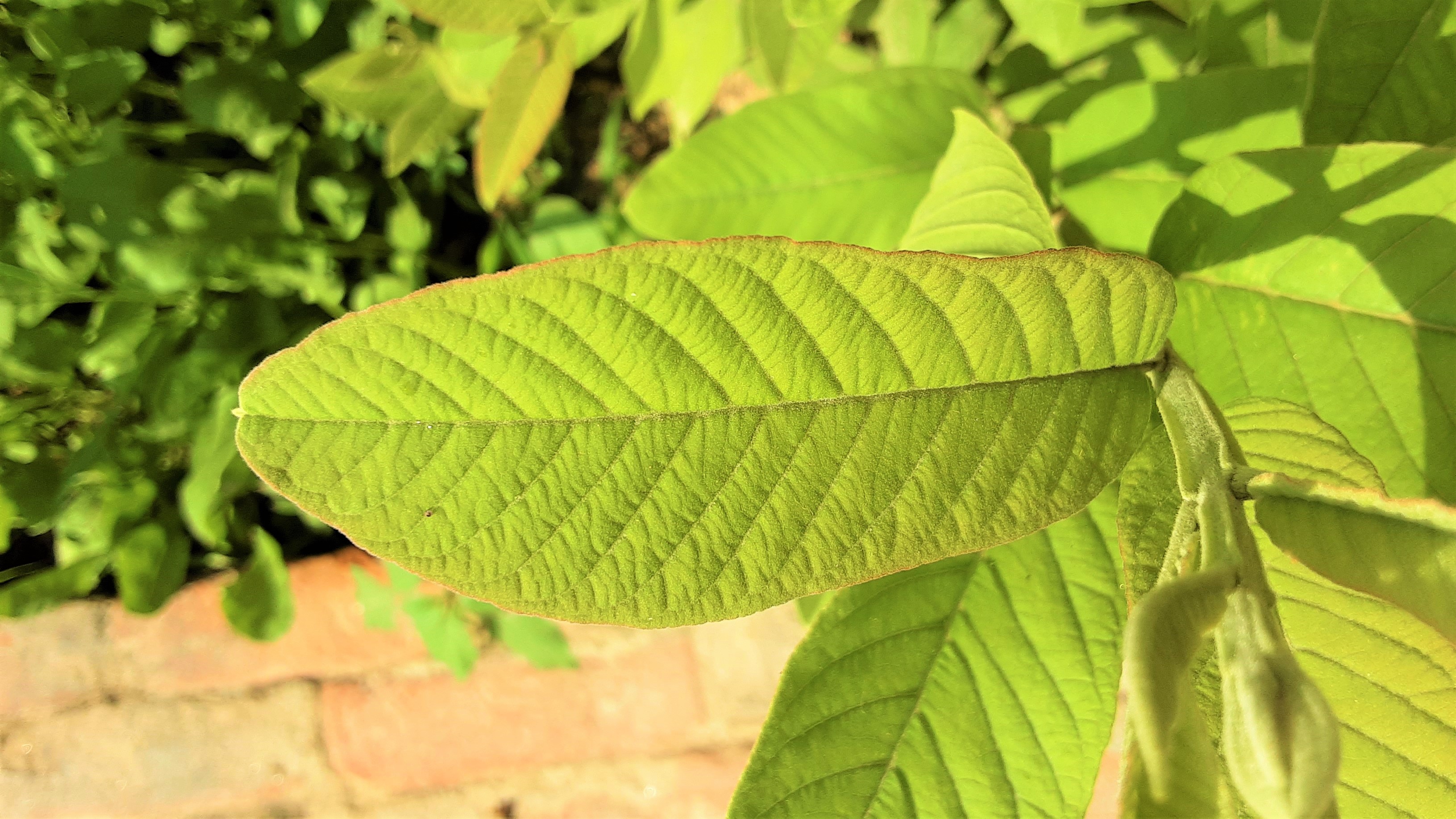Here is the picture of the guava leaf. It is green in color and its smell is the same as guava. It is a fresh leaf and its fruits are sweet in taste. It is liked across Pakistan. The greenery of this leaf attracts everyone. I clicked this photo from my home of mine.