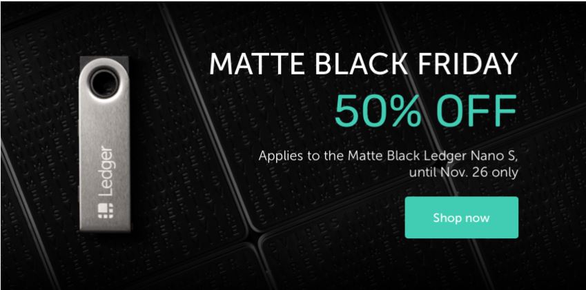 Black Friday Aktion Ledger Nano Sgyularozsa (25)in #ledger • 7 years ago (edited)Matte Black Friday: 50% OFF the Matte Ledger Nano S Simple. Incredibly Secure. http://bit.ly/ledgernanoblackfriday #bitcoin #blackfriday #cryptocurrency #hardverwallet