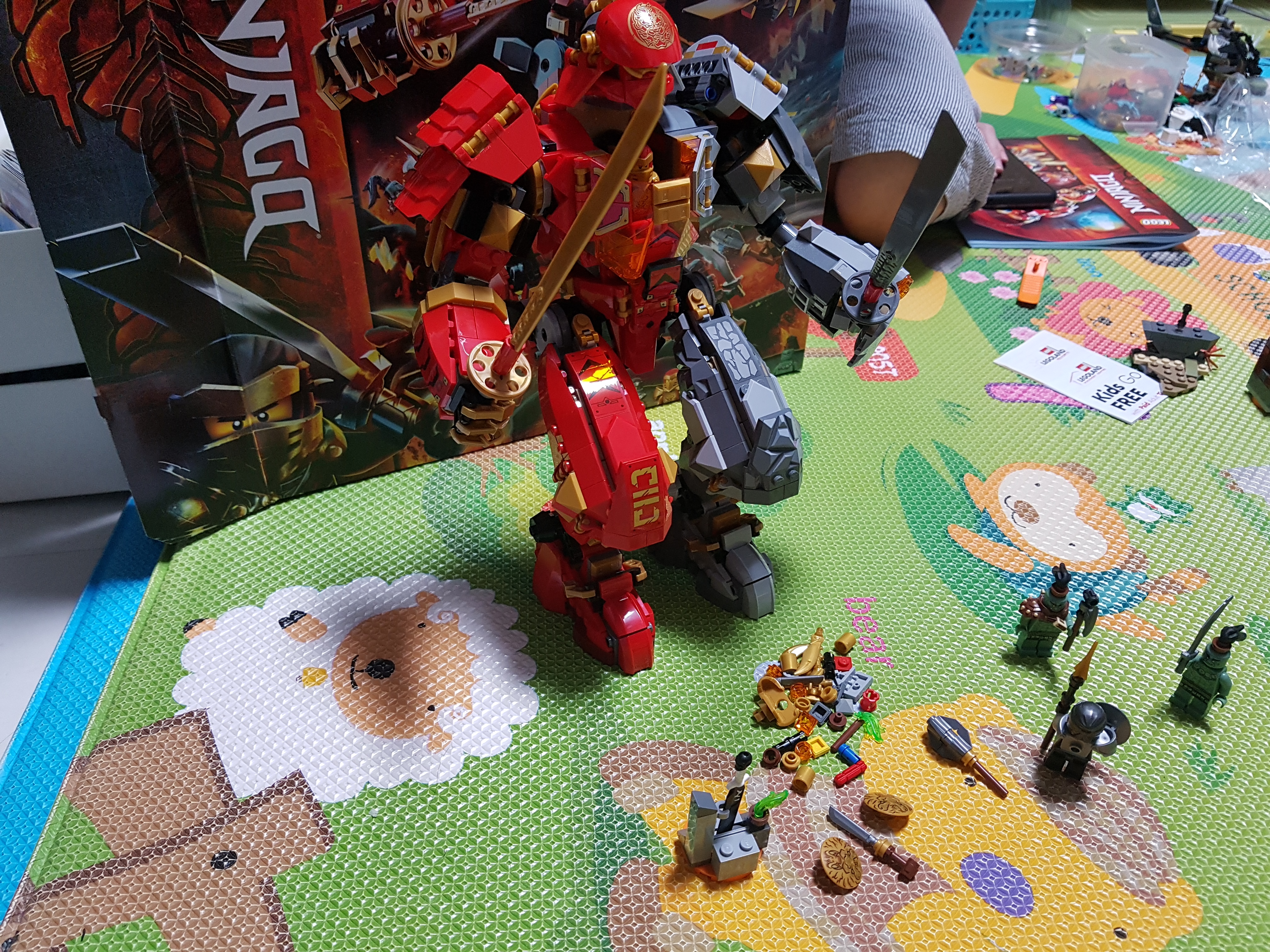 갑옷을 입히니 로봇 안에 안 들어간다고 갑옷을 벗겨 인형을 조종석에 앉힙니다.