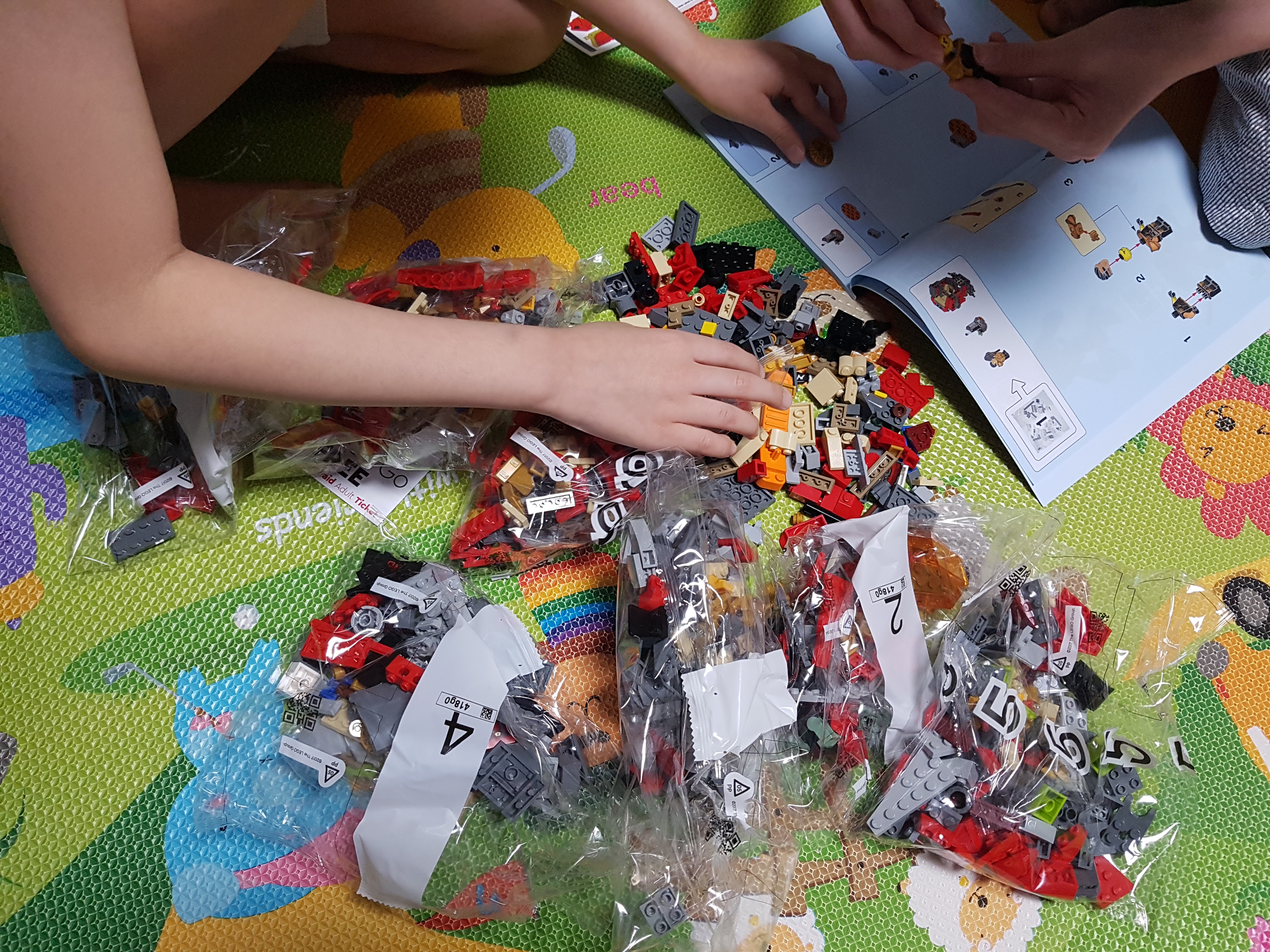 싱글벙글 신난 막둥이는 형님 누나와 함께 레고놀이를 시작합니다.
