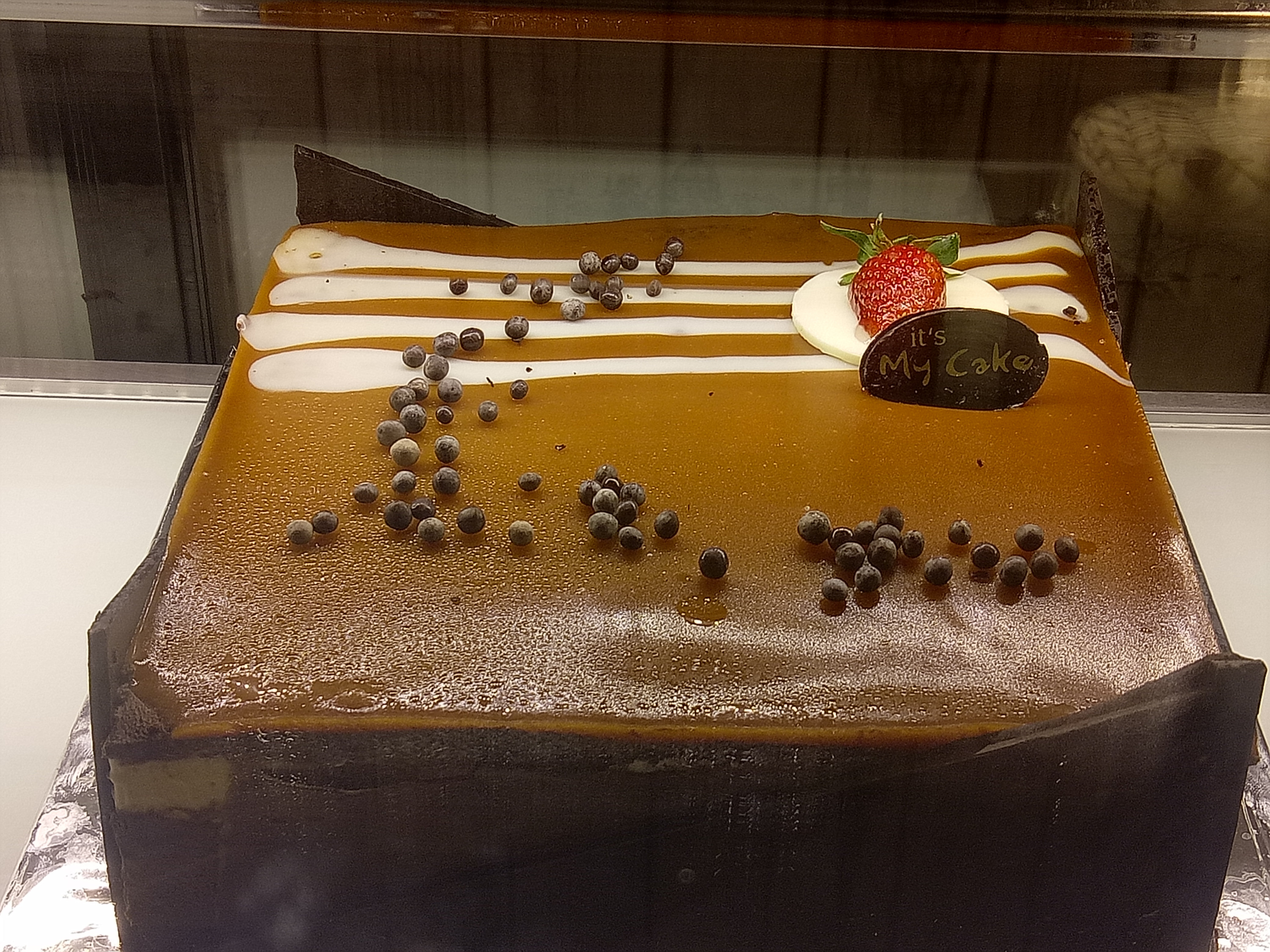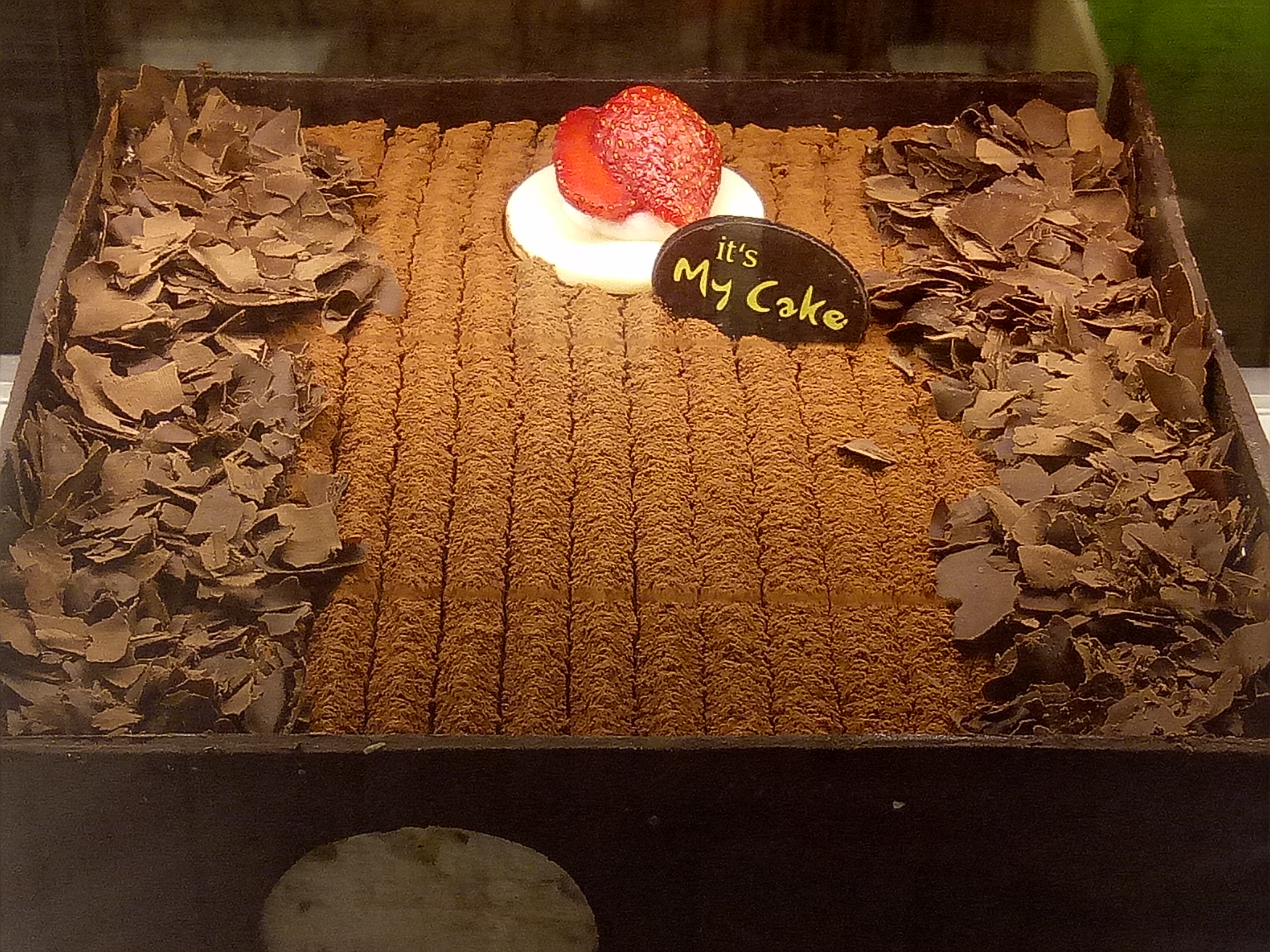 You can eat lollipops while looking at and choosing which cake you want to buy. Because to be honest, I'm really confused about choosing what cake because everything looks tempting. But, finally I have choice: the chocolate-strawberry