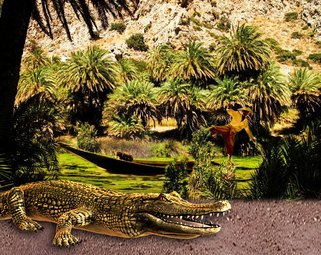 Fisherman & Crocodile - Let's make a collage #17