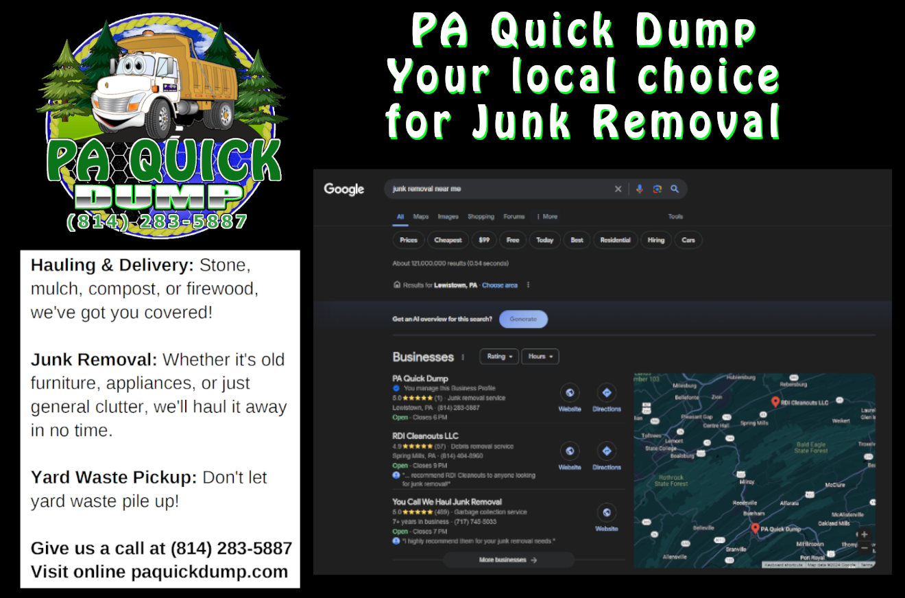 Whether it's junk removal, hauling services, or any heavy-duty task, we've got you covered. Contact us today at (814) 283-5887 or visit paquickdump.com to schedule your service. Let's keep it local and hassle-free with PA Quick Dump! 💪 #CentralPA #DumpTruckService #SupportLocalBusiness