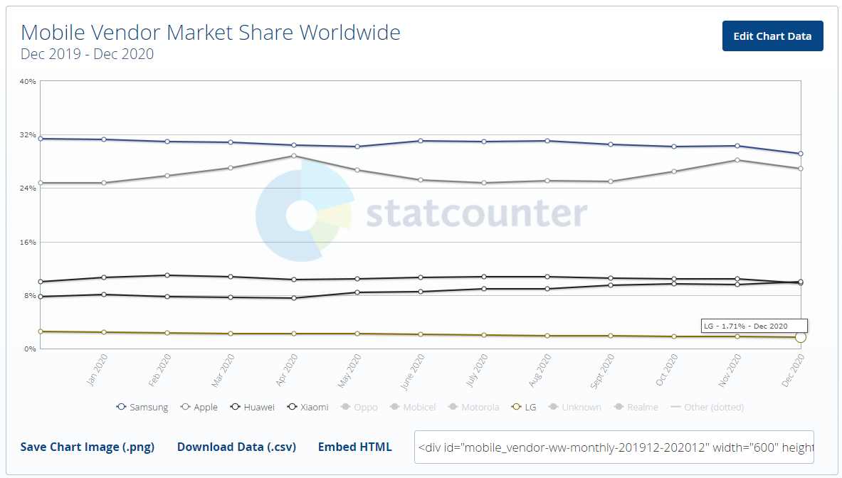 LG전자는 항상 핸드폰이 애플과 삼성에 밀렸었다. 지금도 점유율을 보면 최하점이고 MC (Mobile Communication) 부분에서 8000억대 적자를 내고있다.