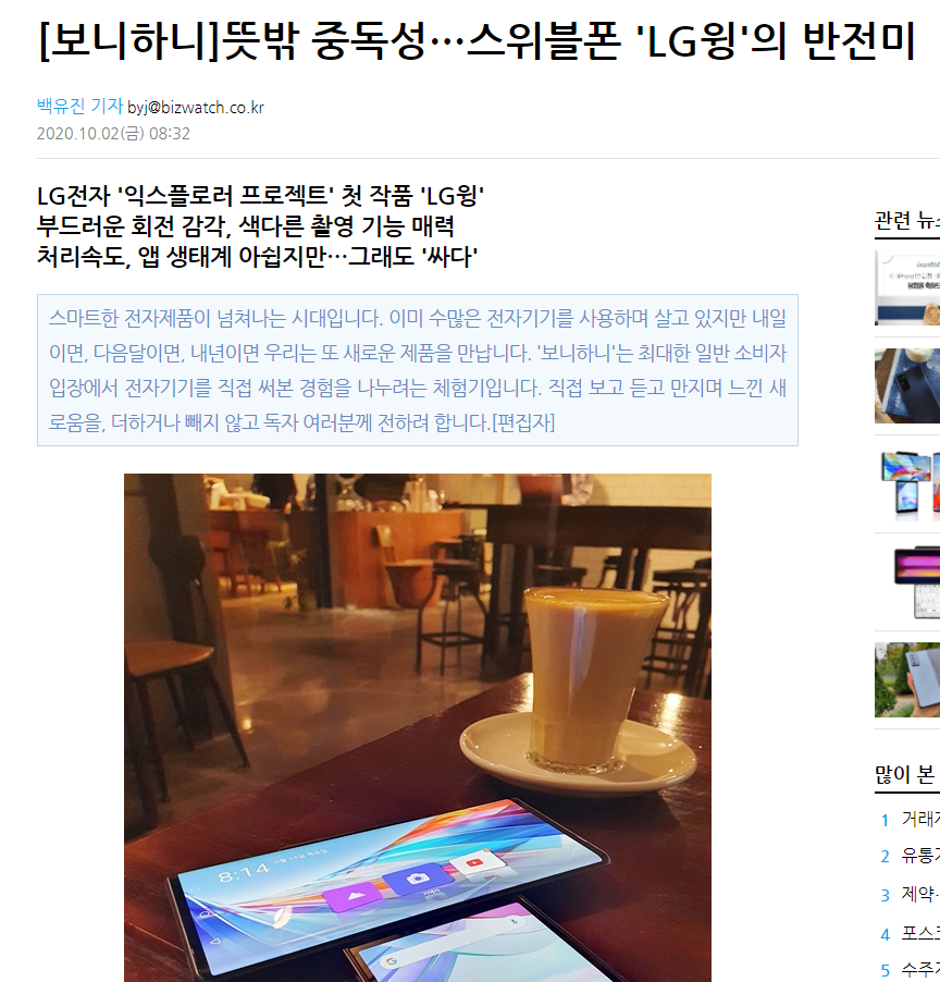 LG윙도 나는 개인적으로 신선한 시도라고 생각한다. 유용성으로 보면 굉장히 뛰어났고 새로움을 컨슈머에게 제공했다. 역시나 내 주위에 쓰는 사람을 볼수는 없지만 나는 LG전자가 좋은 쪽으로 변화하는 과정을 지켜보고 있다고 생각한다. LG 롤러블 폰 역시 성공할지는 미지수이지만 각종 미디어에서 찬사를 받고있다. 내가 즐겨보는 유투브 채널에서도 LG롤러블 폰에 눈여기는 중이다.