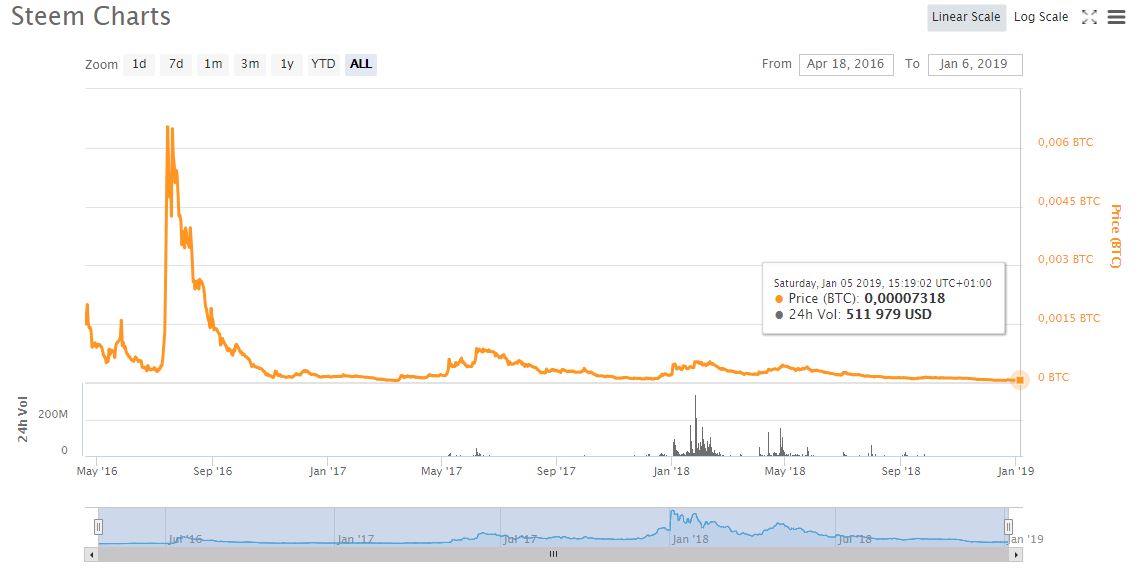 Does this mean that it can't go further down? Of course not. But my money is betting on a positive upswing at some point in 2019, which is why I've just purchased and powered up 2019.19 STEEM.