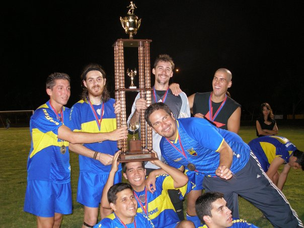 (Celebrating with my mostly Argentine friends in Miami rocking the fake Boca Juniors jersey)