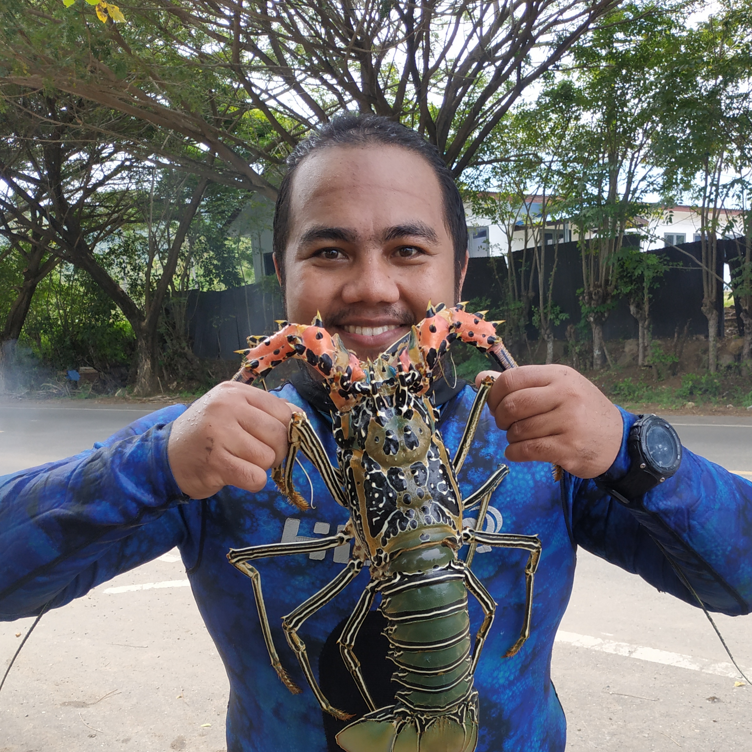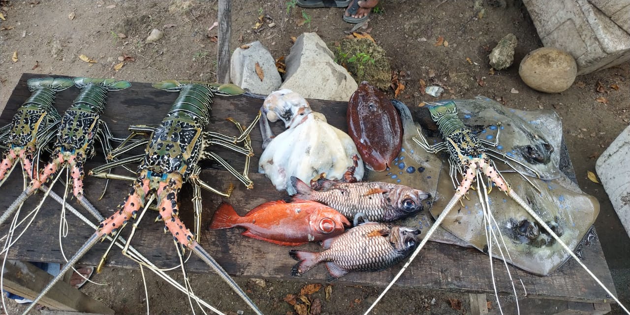 Selain melihat hiu,saya juga sempat menembak sotong yang sedang beraktifitas di karang. Tidak tau apa y sedang dilakukan, mungkinkah sedang hunting makanan, mungkin juga sedang bertelur (karena pekan lalu banyak aktifitas sotong yang kawin di perairan sini). Tidak langsung menembaknya, saya menunggu aktifitas itu selesai. Kalo memang sedang bertelur, lumayan nantinya setelah telur menetas dan menjadi sotong dewasa, kita bisa berburu kembali di musim berikutnya. Pada saat yang sama, bg Jhonny menangkap gurita, menembak pari, lobster, dan beberapa ikan lainnya. Salah satu lobster yang berhasil diamankan memiliki berat 1.3 kilogram. Terjual 250rb karena dalam keadaan mati lobsternya.