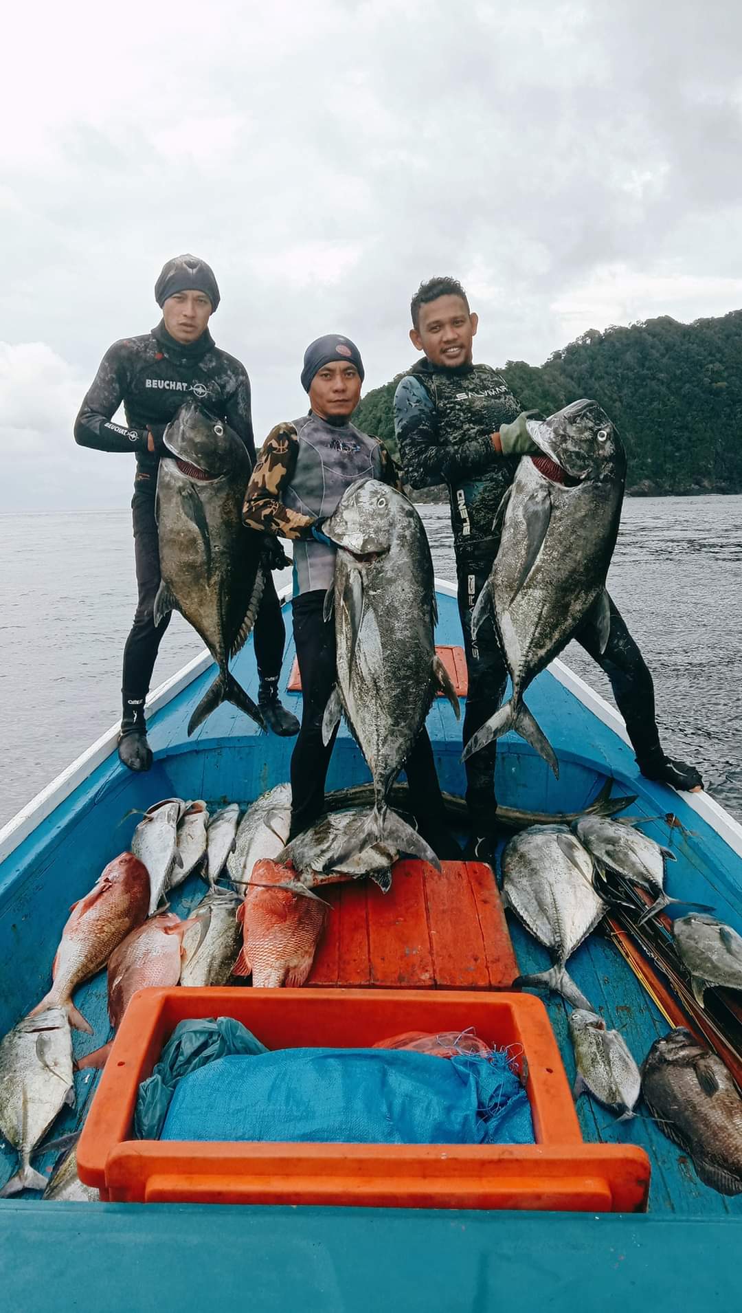 Malamnya, saya menjumpai teman-teman yang pulang hunting dari Pulo Aceh. Alhamdulillah mereka bawa pulang banyak rejeki. Mulai dari GT hingga tengar jarang gigi. Hunting dilakukan selama beberapa hari dan membawakan hasil lebih dari satu tong ikan.