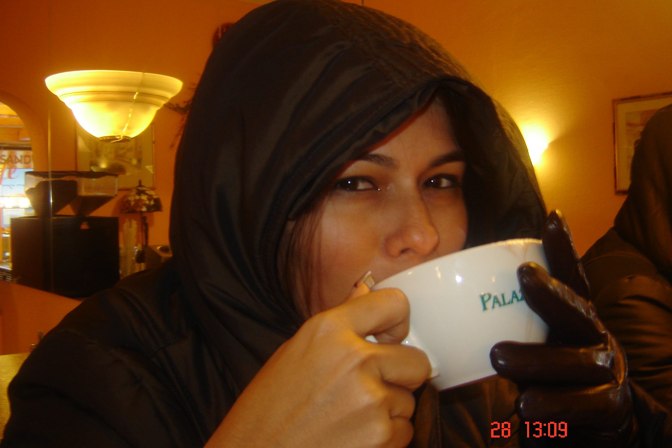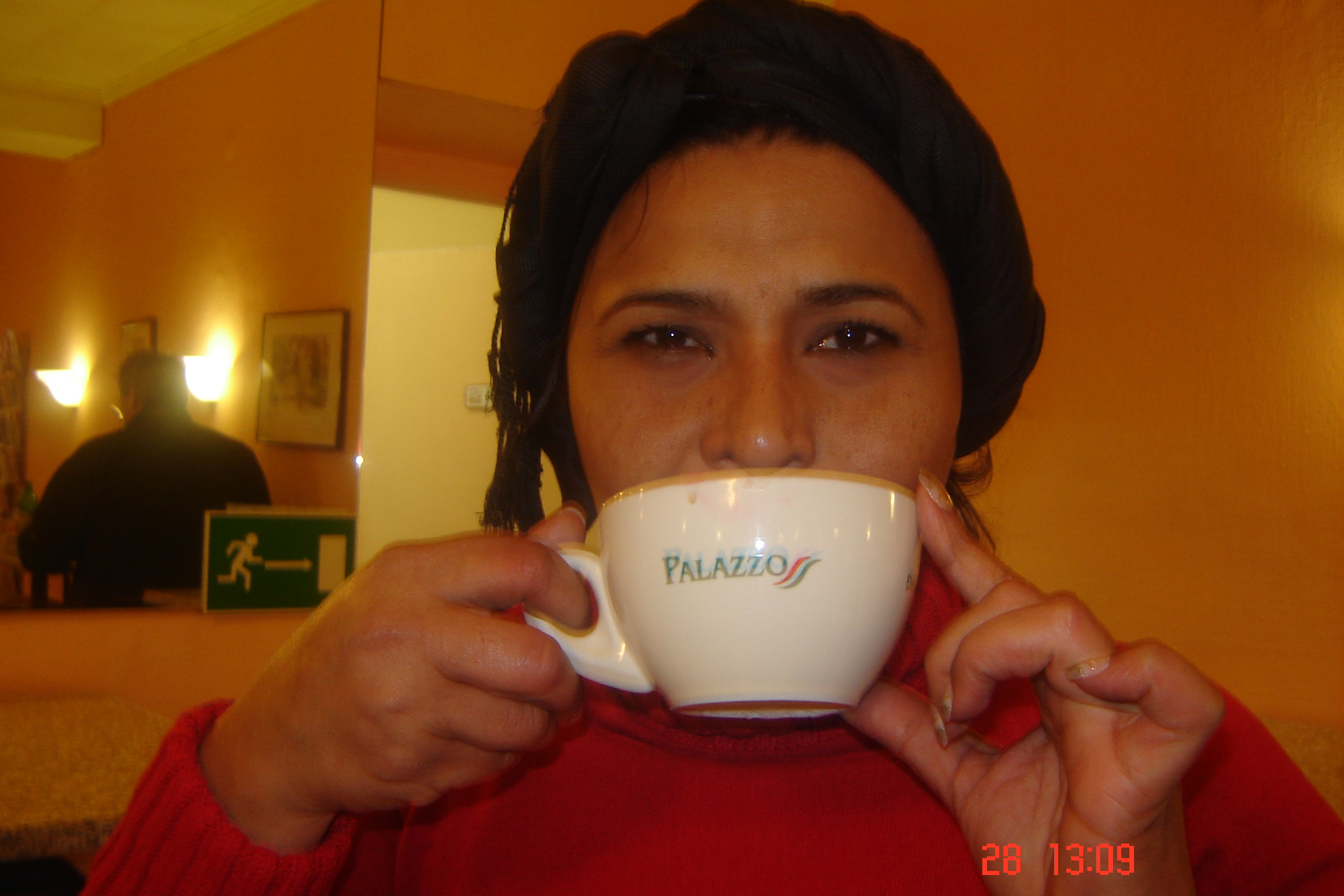 Andry, coqueta tomando café