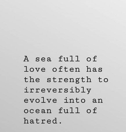 Quote 3ankit-x (25)in #life • 8 years ago A sea full of love often has the strength to irreversibly evolve into an ocean full of hatred. #quote #writing #blog #love