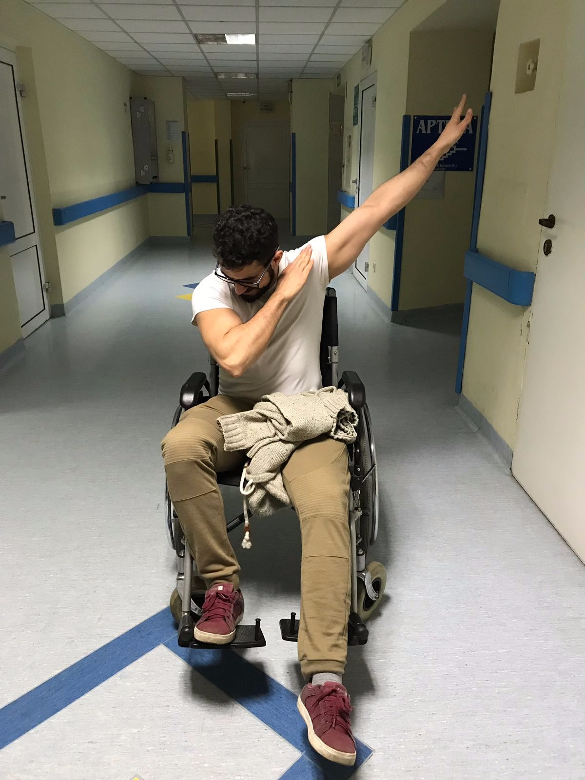 I've never been on a wheelchair! it was such a fun experience!!! I tried to do this wheelie thing and keep the balance at the top, but honestly my leg was hurting me too much every time i tried so I decided to just move around,