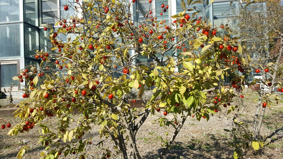 멀리서 보면 대추 같았는데 대추가 아니었어요. 예쁜 붉은색을 띠는 이 나무 열매의 이름이 궁금해요.^^;