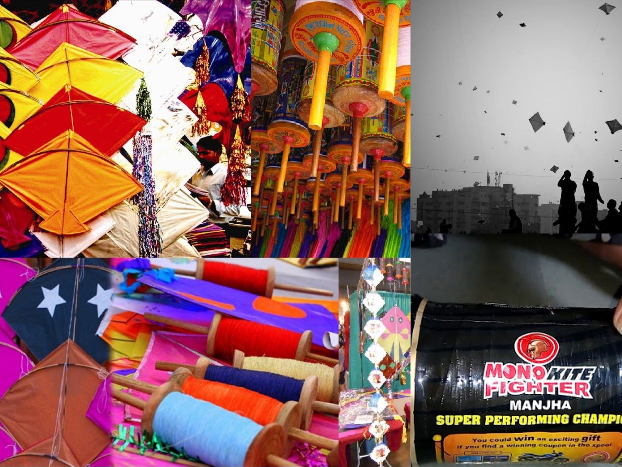 Every year as on 14th jan. there is a festival called makar sankrantri (kite flying festival) in traditional method poeple were using the cotton thread to play and fly kites during that month.