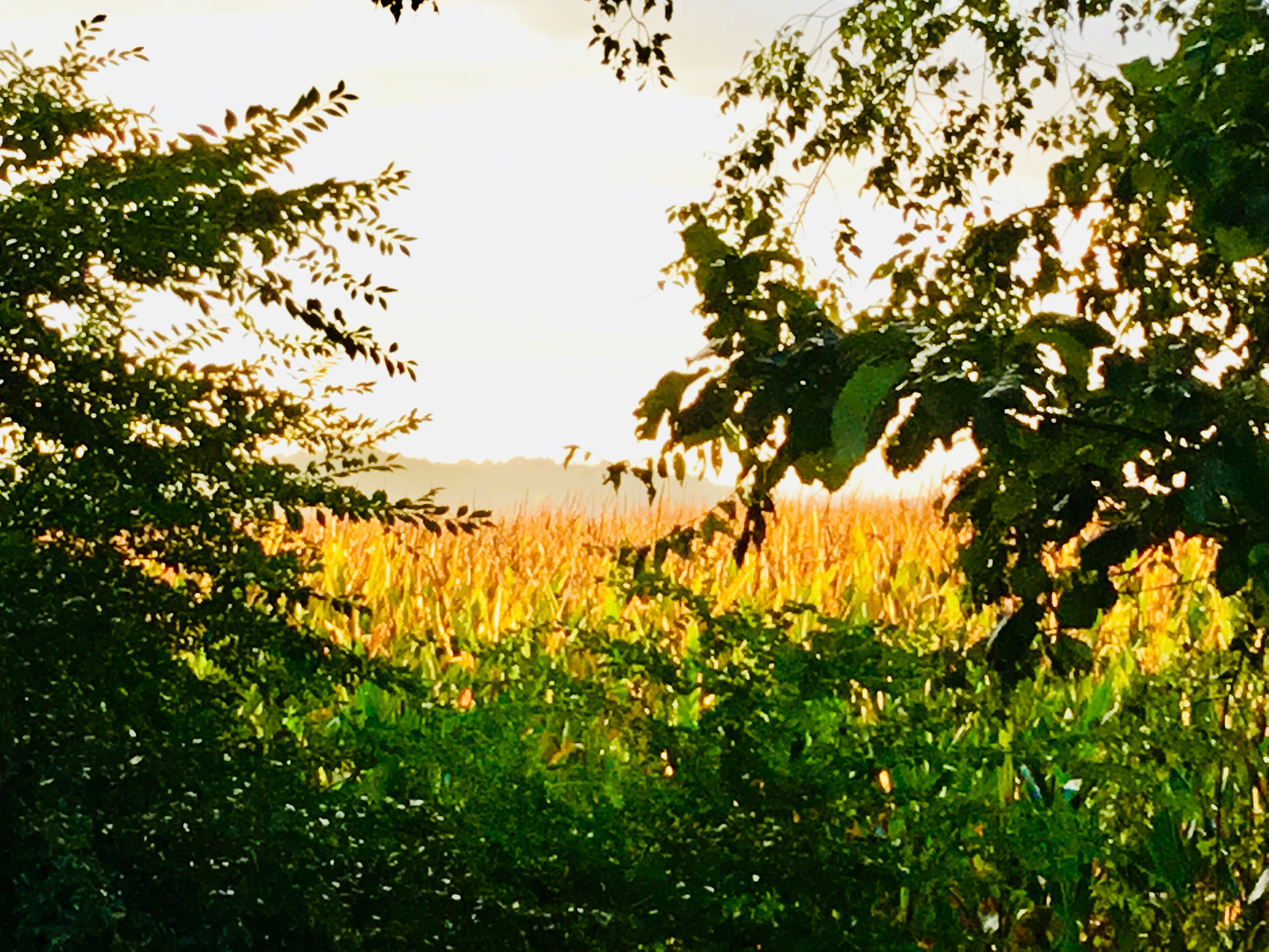 The glowing rays of sun Took my breath away last night! Words can’t describe and the pictures do no justice to the glow that bounced off the stocks of corn as the sun sets behind the mountain. It was almost as if the whole corn field was plugged into some sort of electrical outlet. I am so lucky to have these views from my back porch.